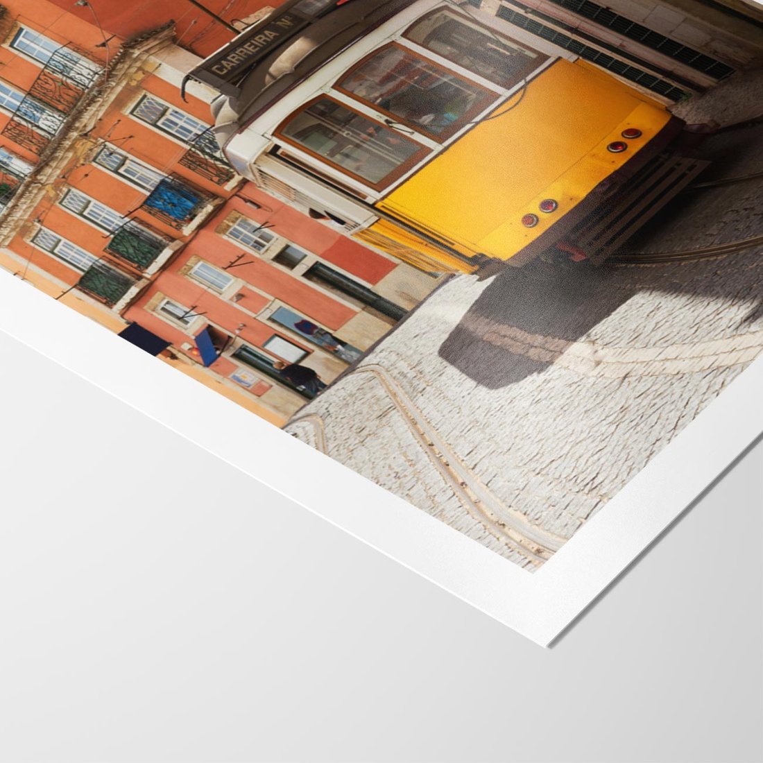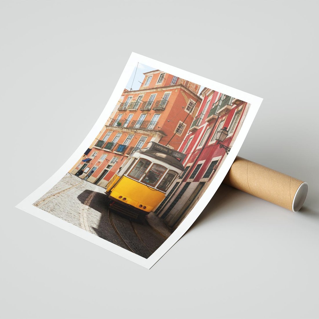 Odkryj urok tramwaju w Lizbonie dzięki temu uroczemu obrazowi. Z kolorowymi fasadami i nostalgicznych nastrojem, ożywia przestrzeń. Ta kompozycja dodaje miejskiego charakteru i romantyzmu, idealna dla miłośników portugalskiego uroku i unikalnych środków transportu.
