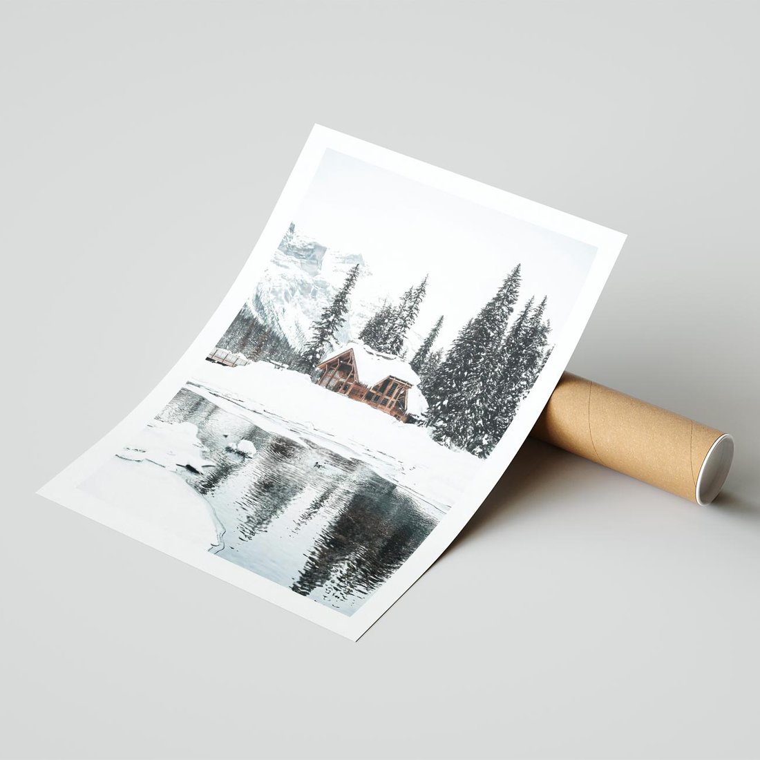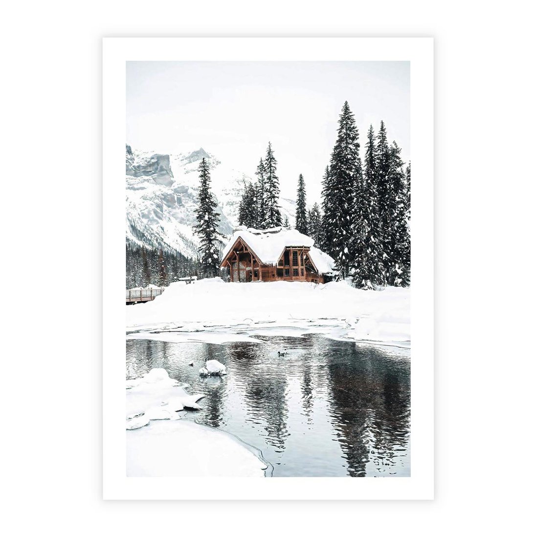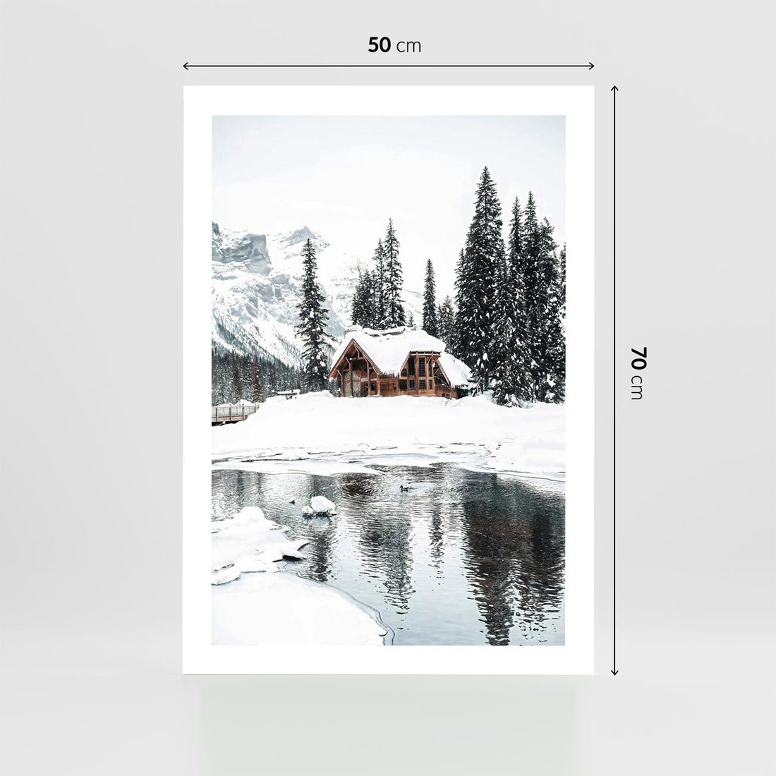 Plakat bez ramy 50x70 - Urok Zimowego Krajobrazu - domek w górach, zima