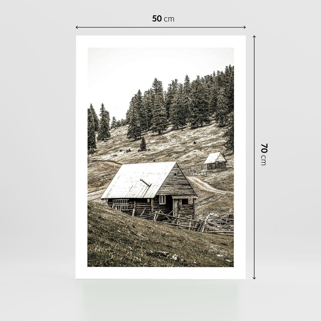 Plakat bez ramy 50x70 - Ustronne Chatki w Górach - rustykalne domki w górach, sepia