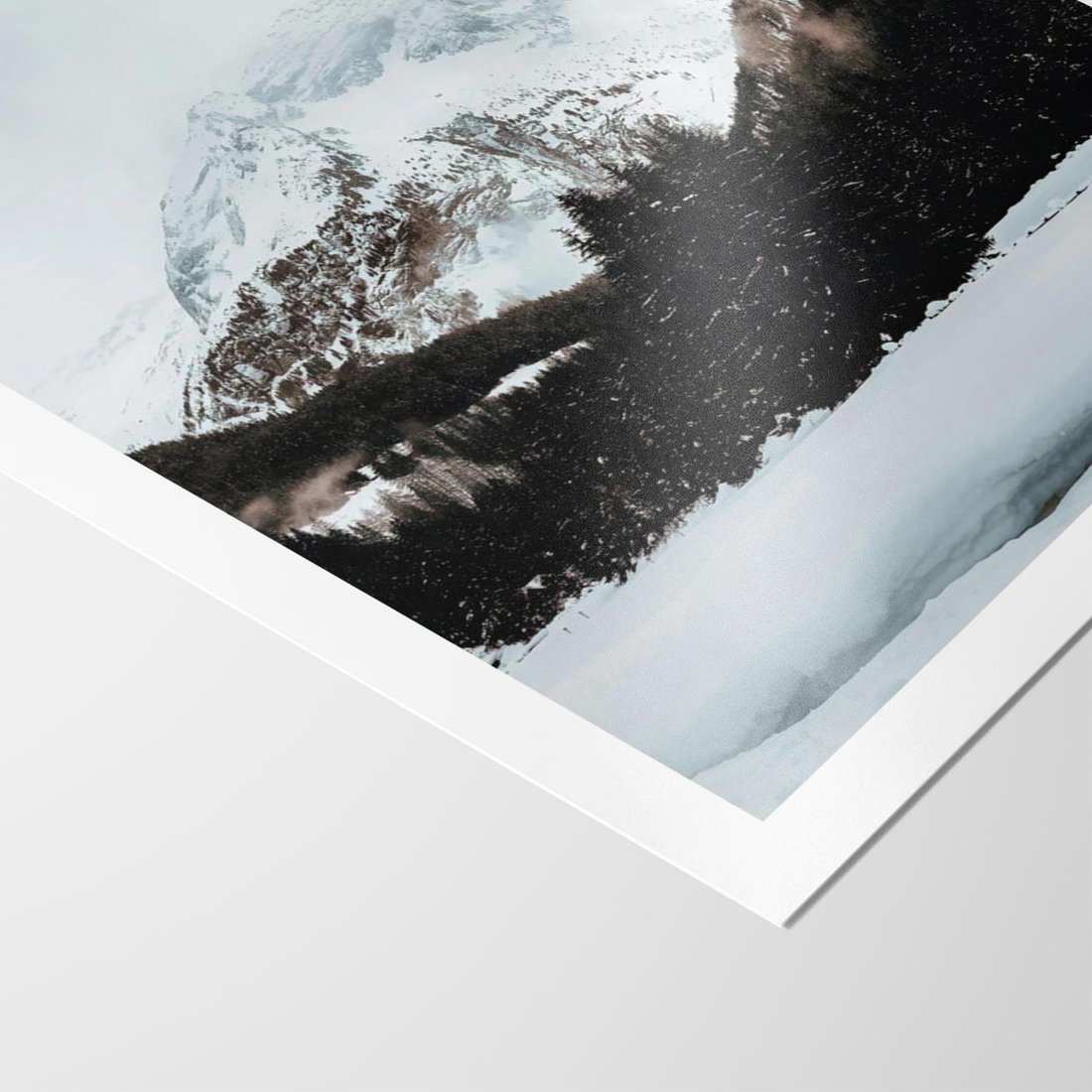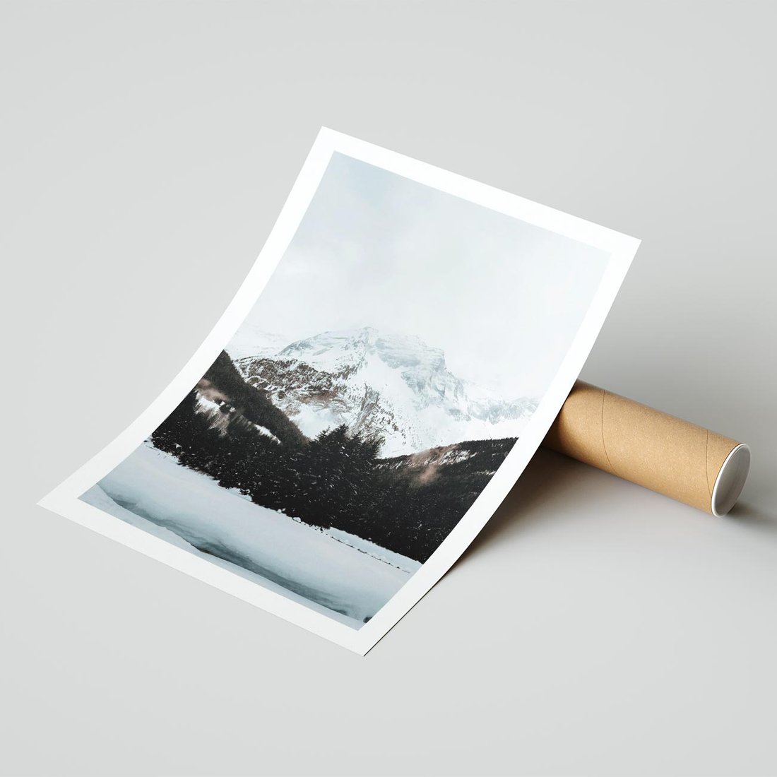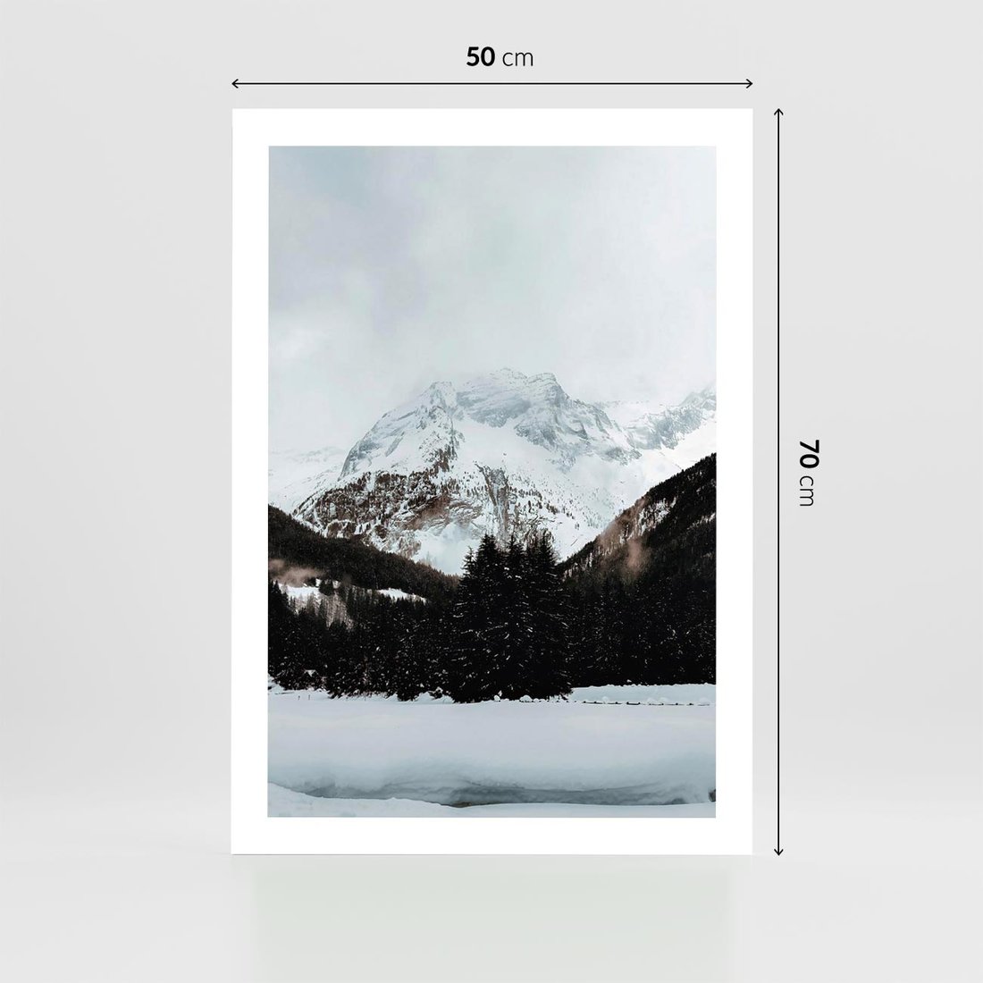 Plakat bez ramy 50x70 - W Cieniu Śnieżnych Szczytów - górski krajobraz, zima