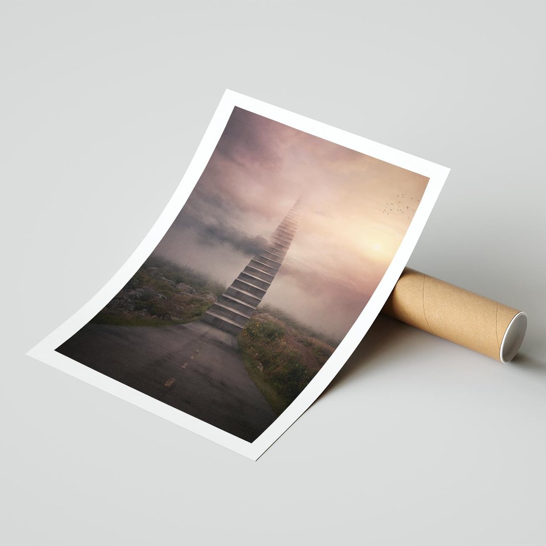 Plakat bez ramy 50x70 - Wędrówka po malowniczej drodze - droga, schody