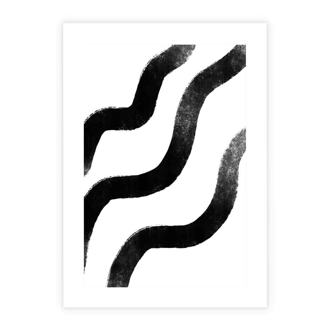 Ten minimalistyczny obraz abstrakcyjny w stylu modern art charakteryzuje się czarnymi falującymi liniami, które tworzą dynamiczną i wyrazistą kompozycję. To dzieło sztuki doskonale oddaje ducha nowoczesności i minimalizmu, nadając się idealnie do współczesnych wnętrz.