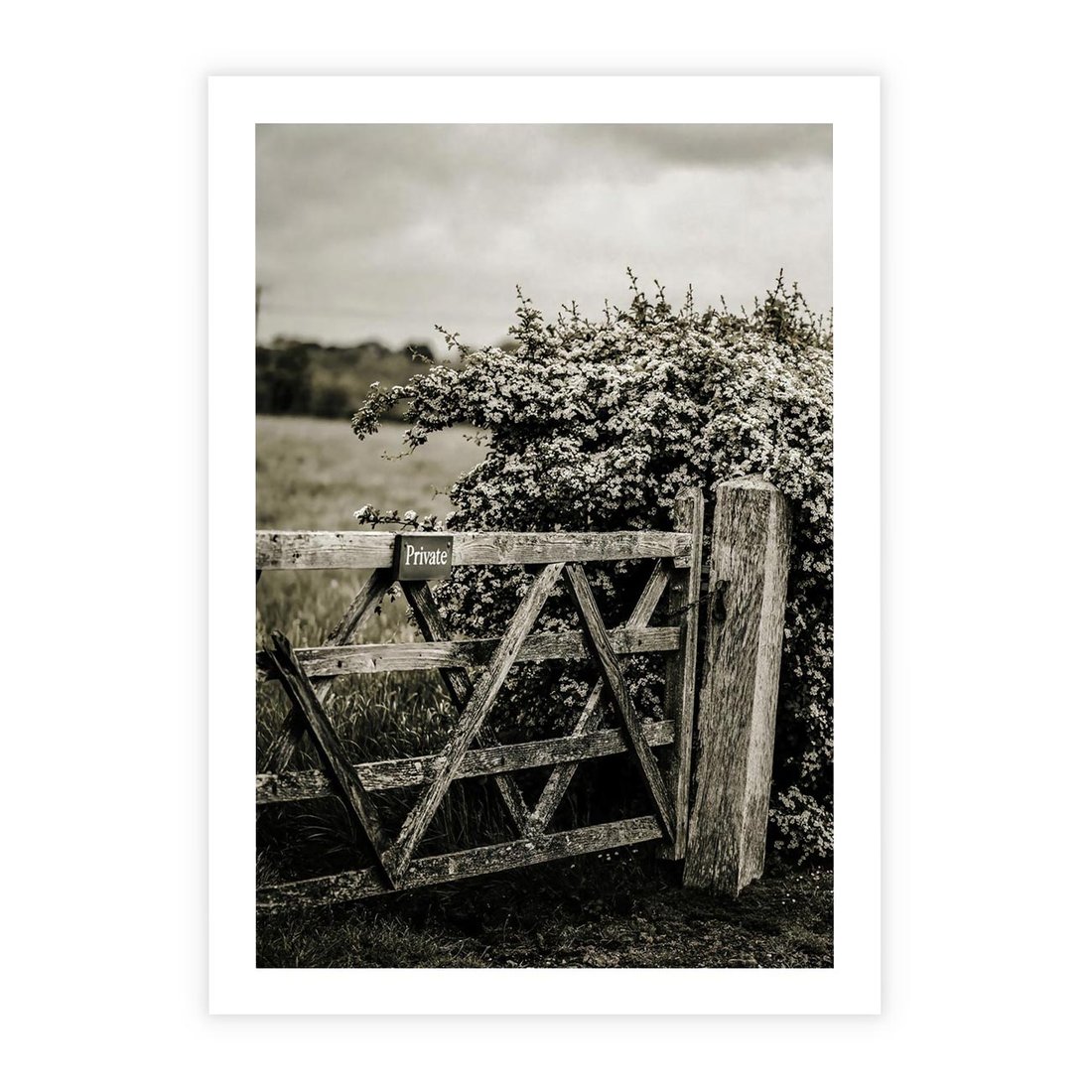 • Plakat bez ramy 50x70 - Wiejski Urok: Stary Płot i Kwitnący Krzew