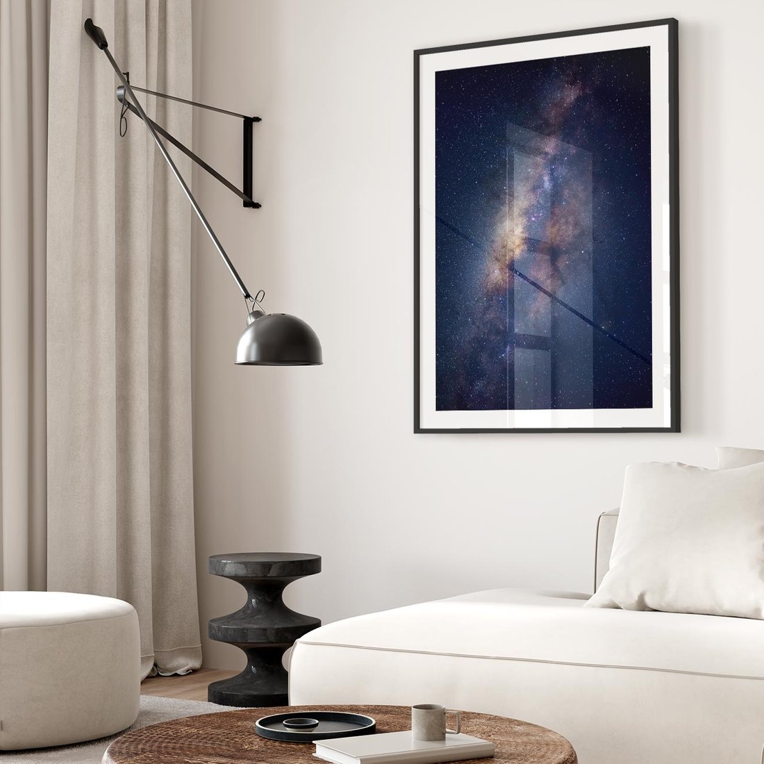 Nasz obraz to hołd dla niesamowitego piękna kosmosu. To malownicze ujęcie przedstawiające rozgwieżdzone niebo z widoczną Drogą Mleczną, co przenosi nas w świat kosmicznych cudów. To idealna dekoracja, aby wprowadzić do swojego wnętrza atmosferę tajemniczości i nieskończoności kosmosu.