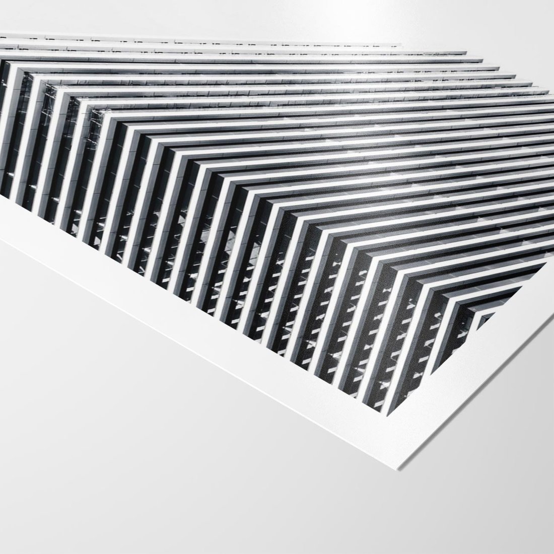 Nasza grafika to wyraz nowoczesnej architektury i wyrafinowanej estetyki. Ta kompozycja przedstawia imponujący, wysoki wieżowiec ukazany w geometrycznej perspektywie, co nadaje obrazowi elegancji i nowoczesnego uroku. Ta dekoracja idealnie pasuje do wnętrz o nowoczesnym designie, dodając im wyjątkowego stylu i głębi.
