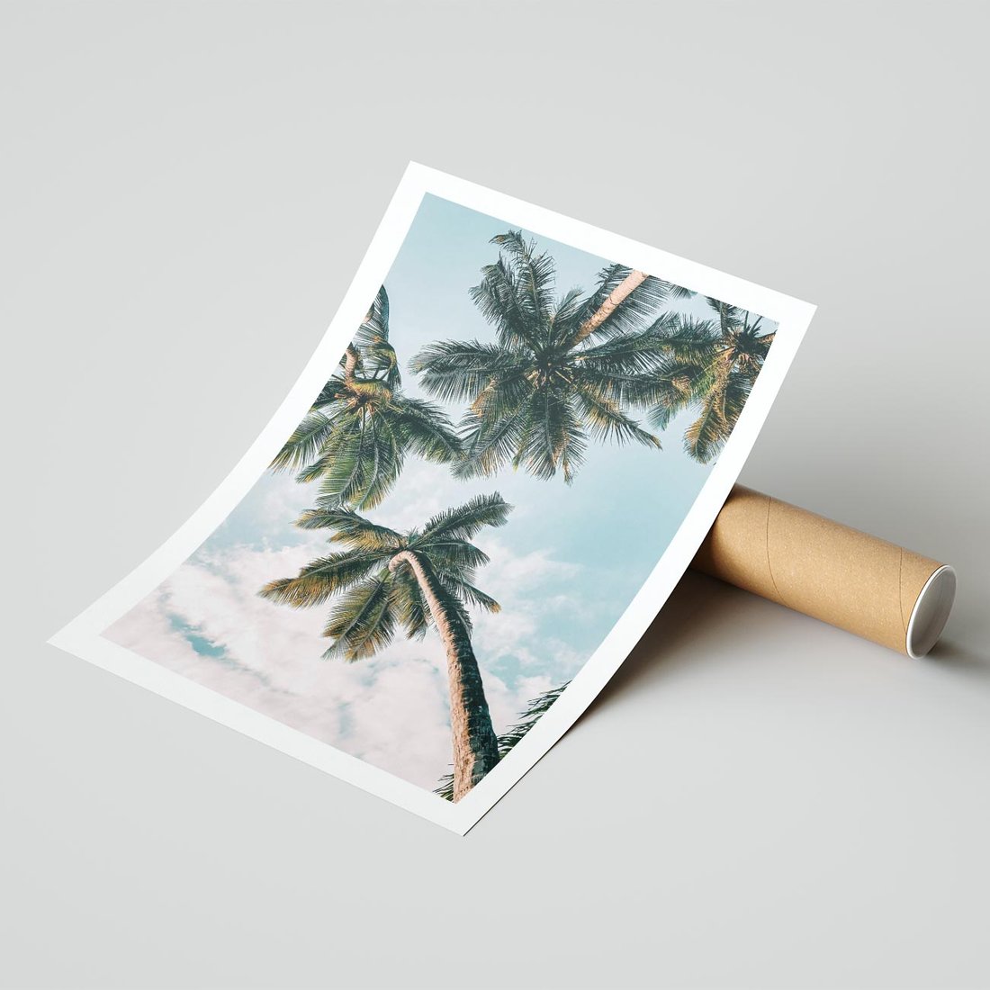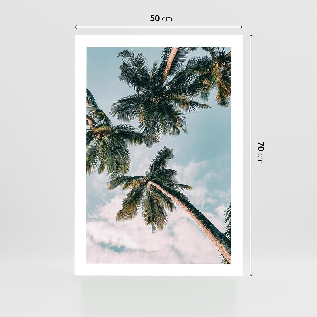 Plakat bez ramy 50x70 - Wzrok ku Niebu - palmy na tle nieba, ujęcie z dołu
