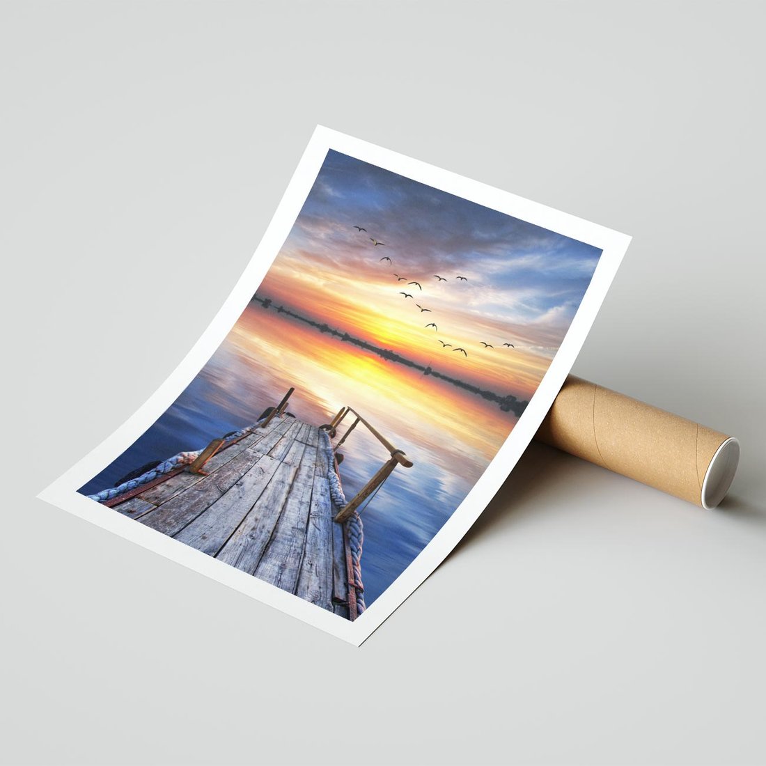 - Plakat bez ramy 50x70 - Zachód słońca na pomostcie