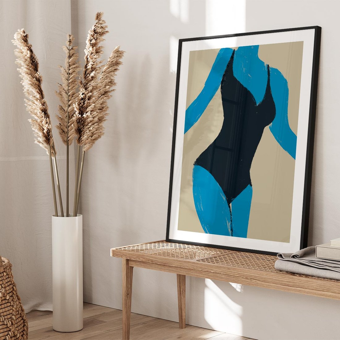 Nasz abstrakcyjny plakat to porywający przykład nowoczesnej sztuki, na którym wyrazista postać kobiety w stroju kąpielowym wyróżnia się na tle dynamicznych form i kolorów. Ta kompozycja emanuje energią i stylowym zmysłem, tworząc unikalną wizję piękna i wyrafinowanego designu. To idealny wybór dla tych, którzy pragną dodać do swojej przestrzeni artystycznego powiewu nowoczesności i ekscytującego charakteru.