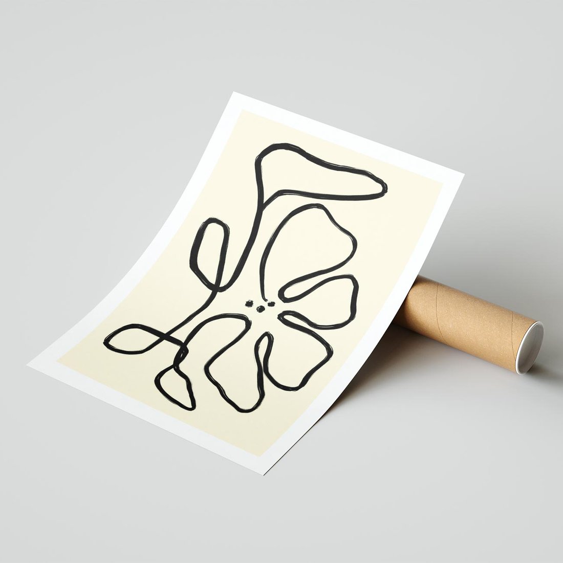 Nasza abstrakcyjna sztuka to subtelna kompozycja, przypominająca delikatny kwiat, oparta na kontrastujących czerni i bieli. W minimalistycznym stylu, każdy element ma swoje znaczenie, tworząc spokojną i elegancką całość. To dzieło sztuki oddające piękno w prostocie, doskonale wprowadzające do przestrzeni chwilę refleksji i harmonii.
