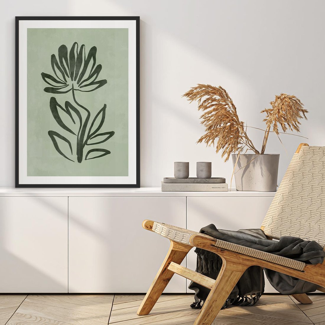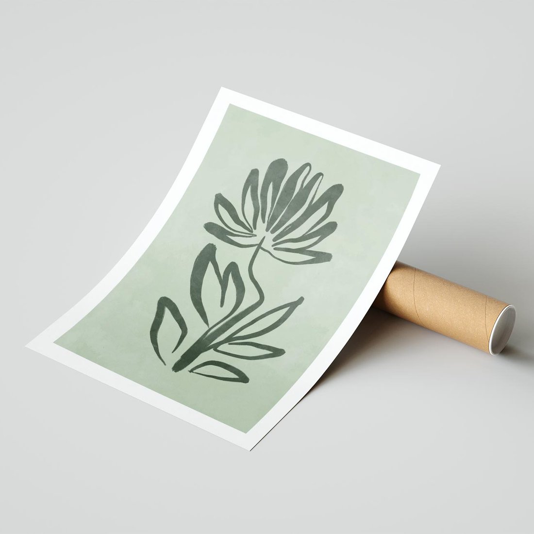 Zgaszona zieleń w abstrakcyjnej kompozycji tworzy minimalistyczny plakat, który doskonale wpisuje się w estetykę skandynawskiego designu. Spokojne odcienie i geometryczne formy nadają wnętrzu harmonię i subtelność.