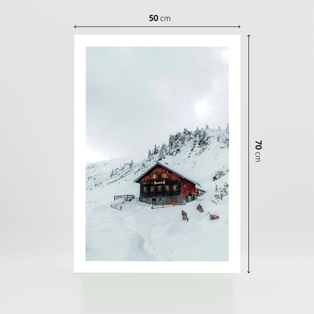 Plakat bez ramy 50x70 - Zimowa Magia - domek, śnieg