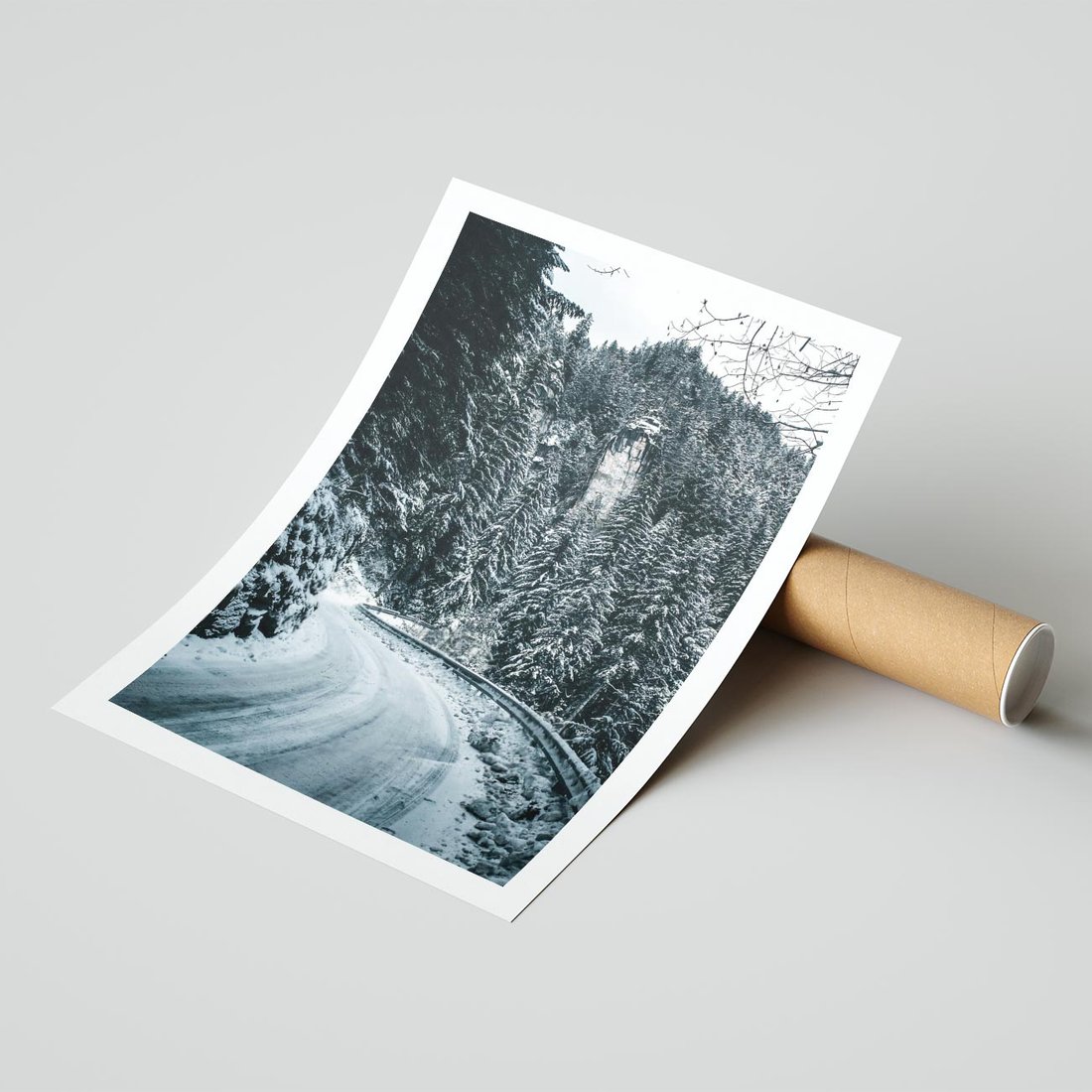 Plakat bez ramy 50x70 - Zimowa Przygoda - zima w górach, droga