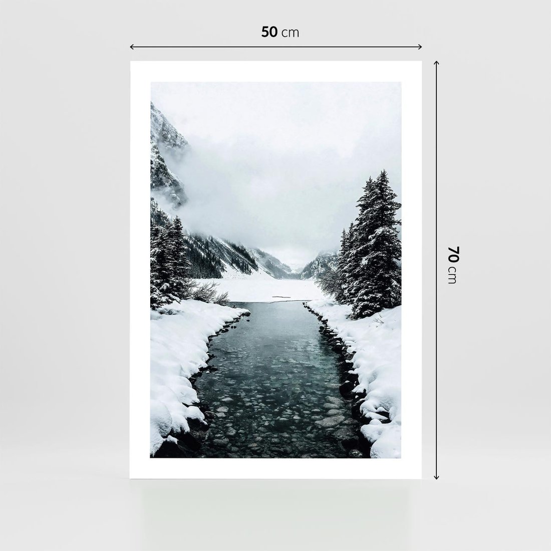 - Plakat bez ramy 50x70 - Zimowa Przyroda: Rzeka, Góry i Śnieg