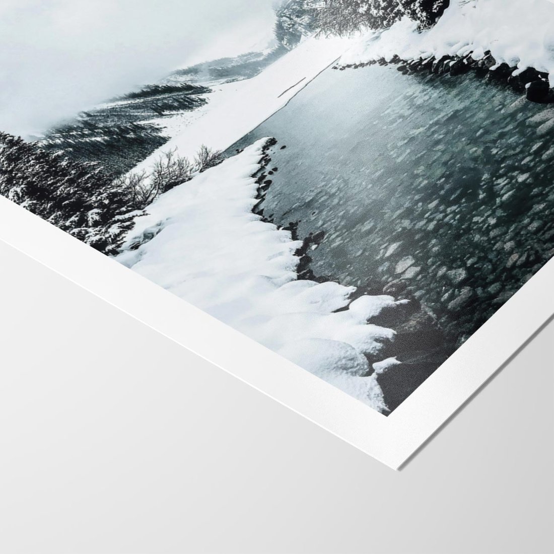 Plakat bez ramy 50x70 - Zimowa Przyroda: Rzeka, Góry i Śnieg - zima, rzeka