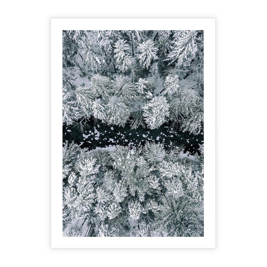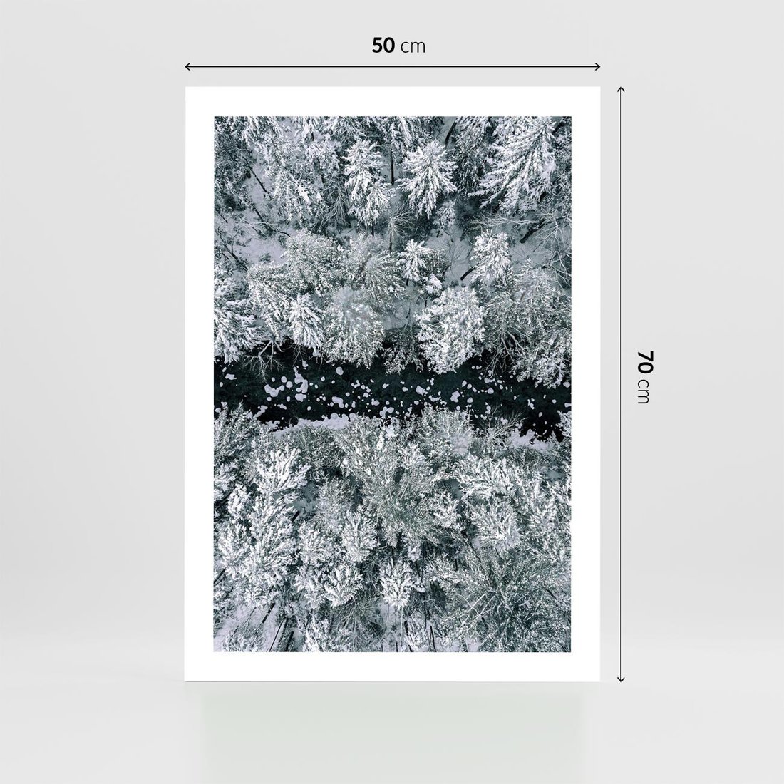 Plakat bez ramy 50x70 - Zimowy Krajobraz z Góry - zdjęcie z góry, zaśnieżony las i zamarznięty strumyk