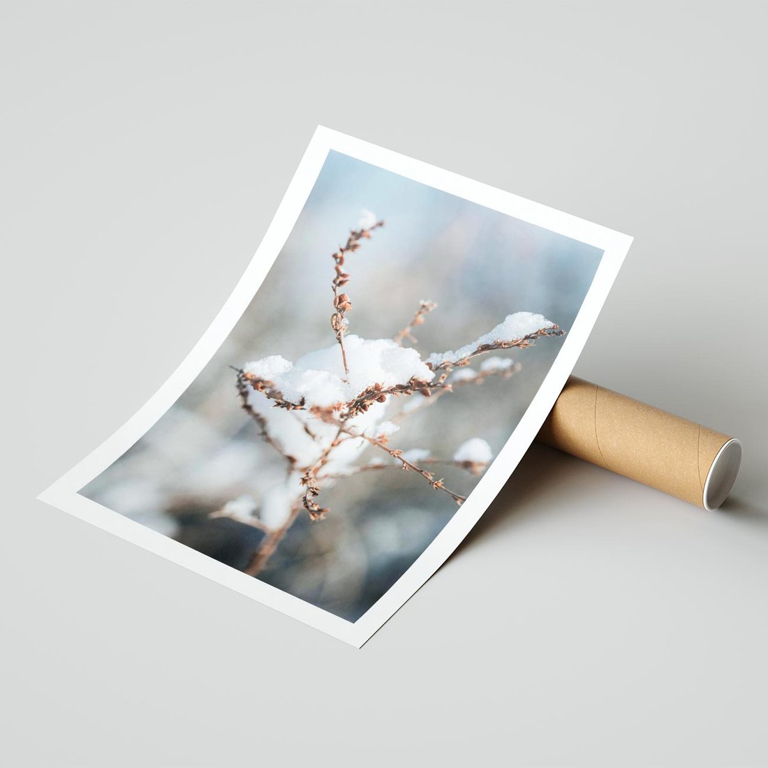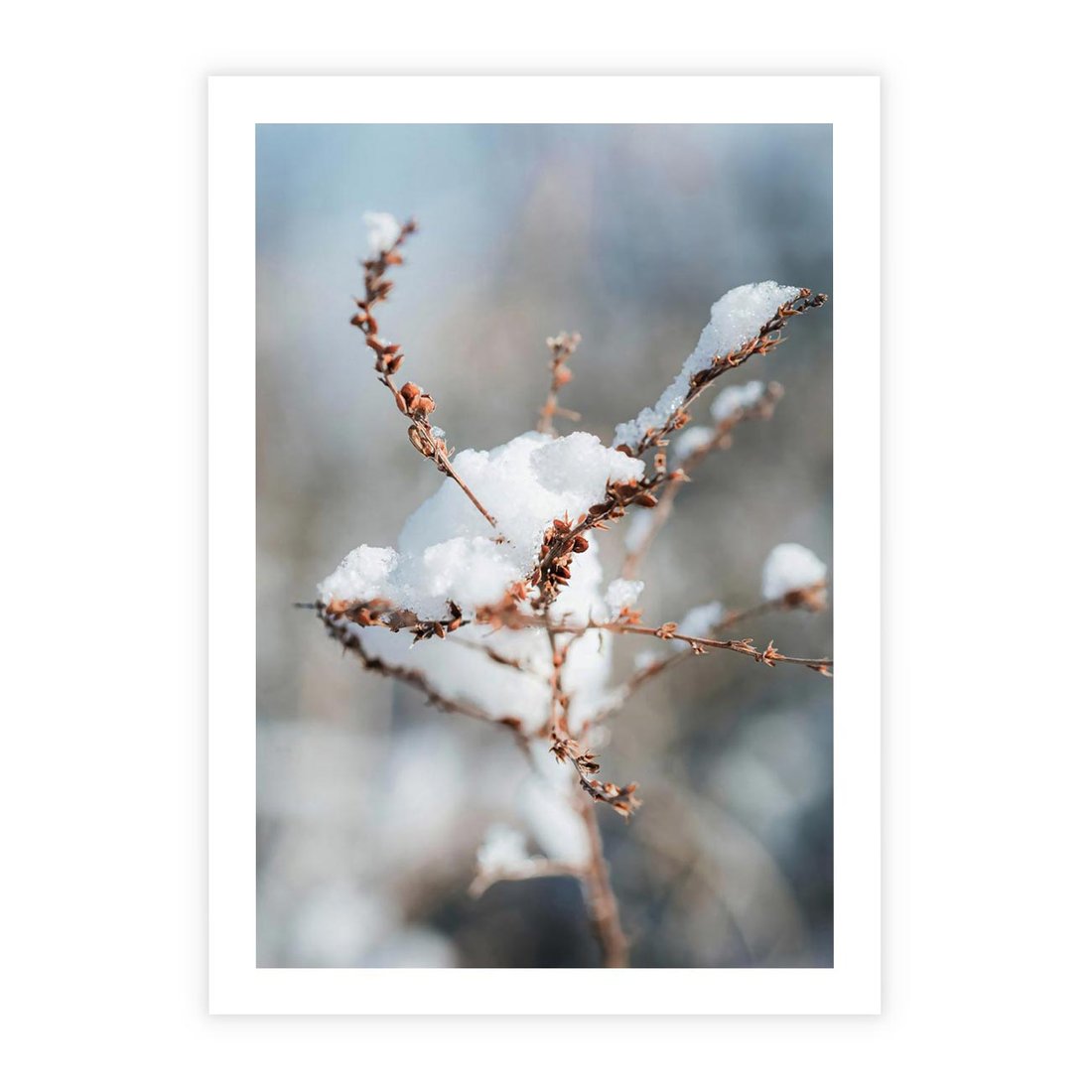 Plakat bez ramy 50x70 - Zimowy Urok Natury - gałązki pod śniegiem, natura