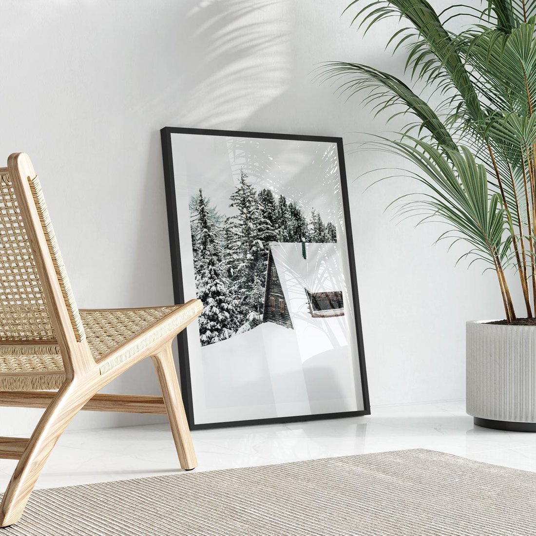 Plakat bez ramy 50x70 - Zimowy Urok - śnieg, domek w górach