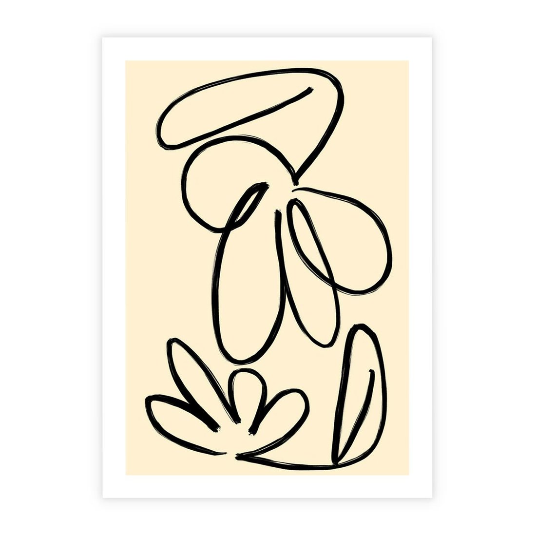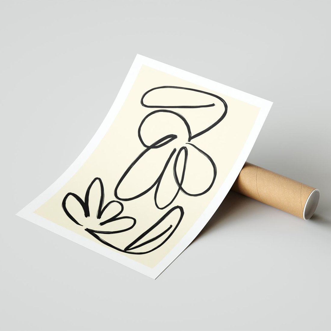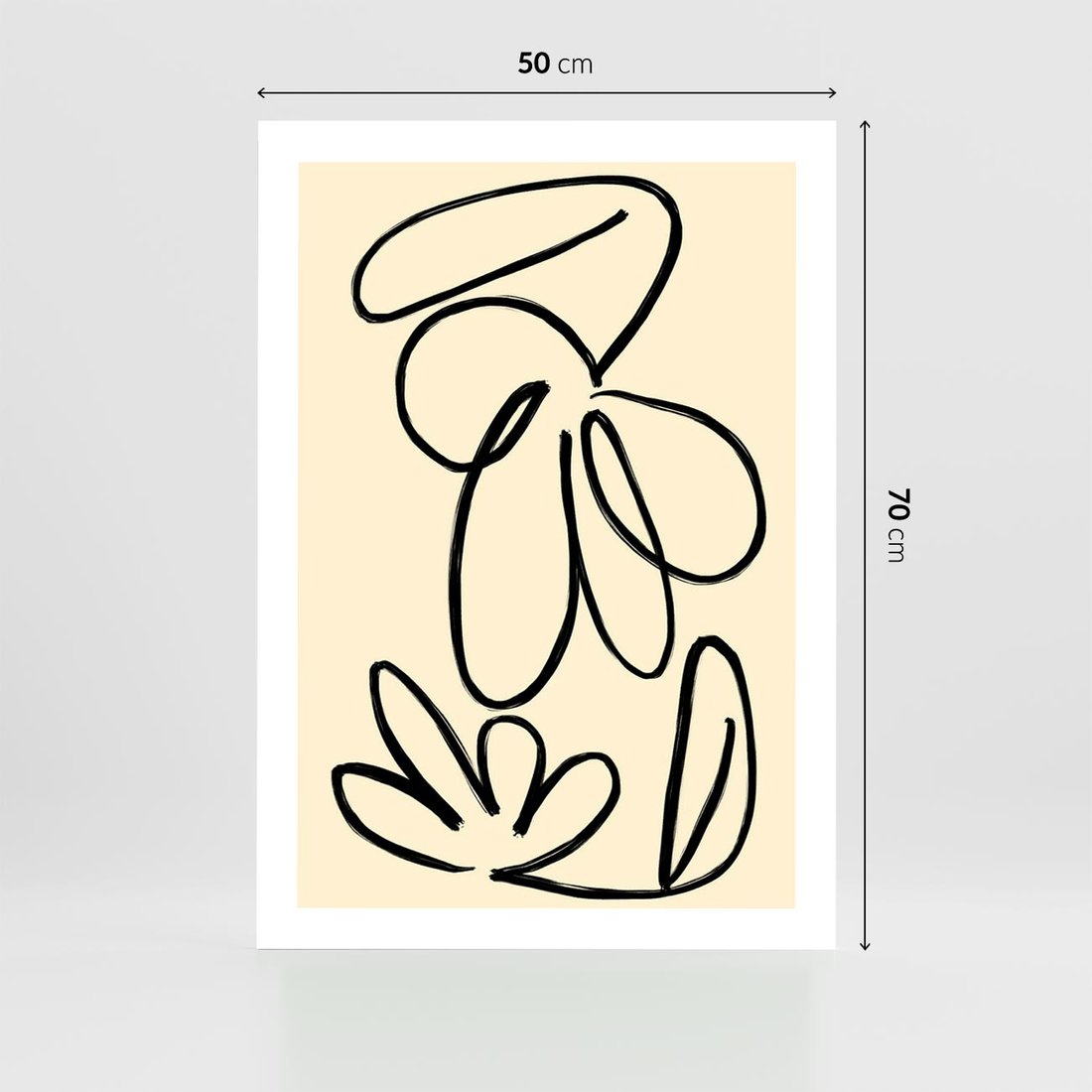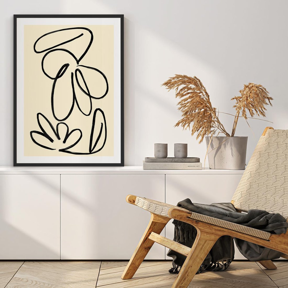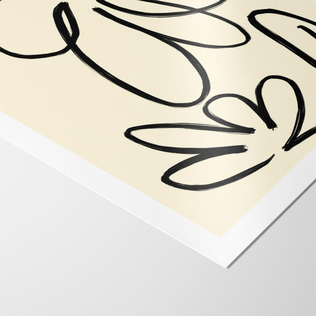 Nasza abstrakcyjna sztuka to delikatna kompozycja przypominająca kształtem kwiat. Wszystko to utrzymane jest w kontrastujących czerń i biel. To minimalizm w swojej najczystszej formie, gdzie subtelne linie tworzą elegancką i spokojną wizję, oddając hołd prostocie i pięknu.