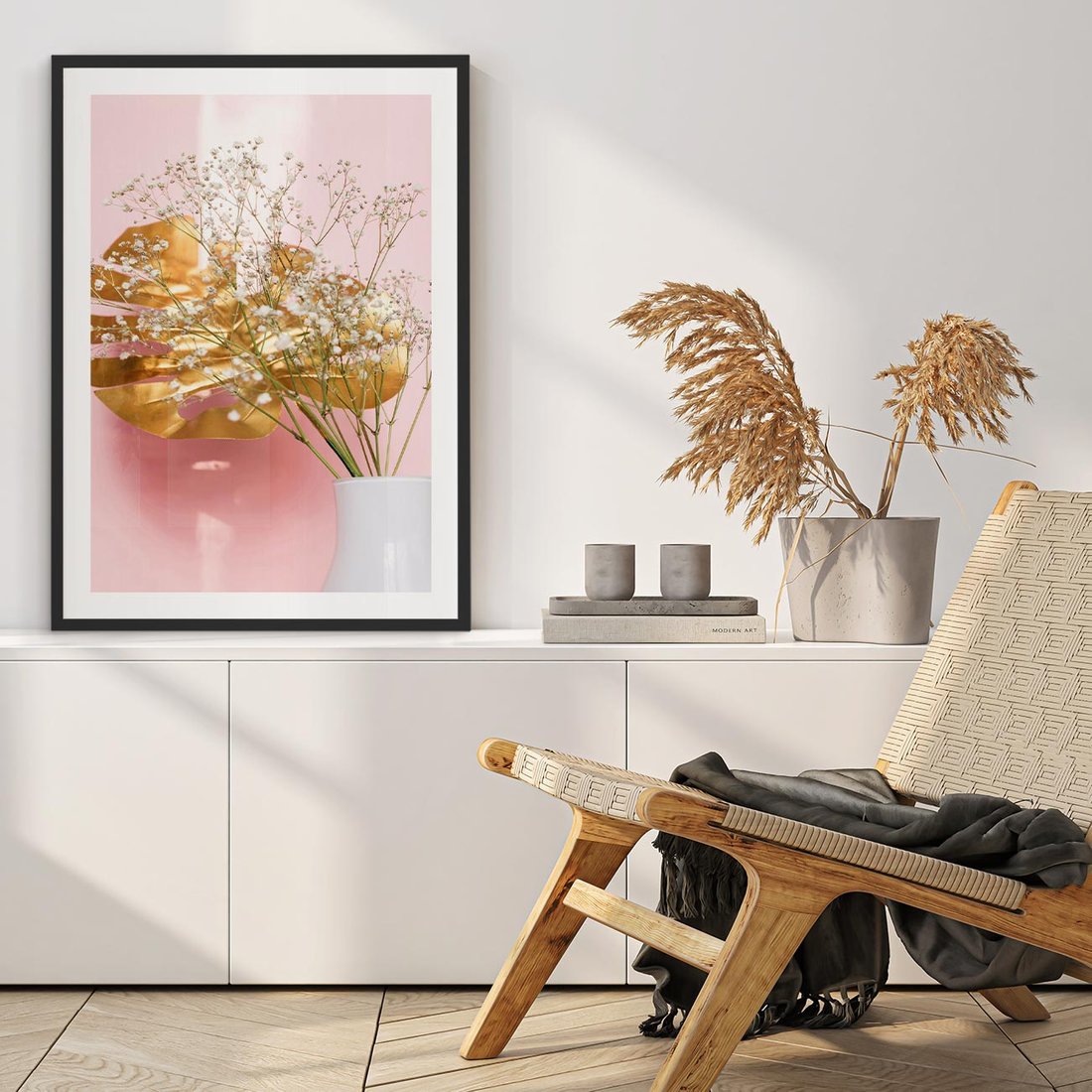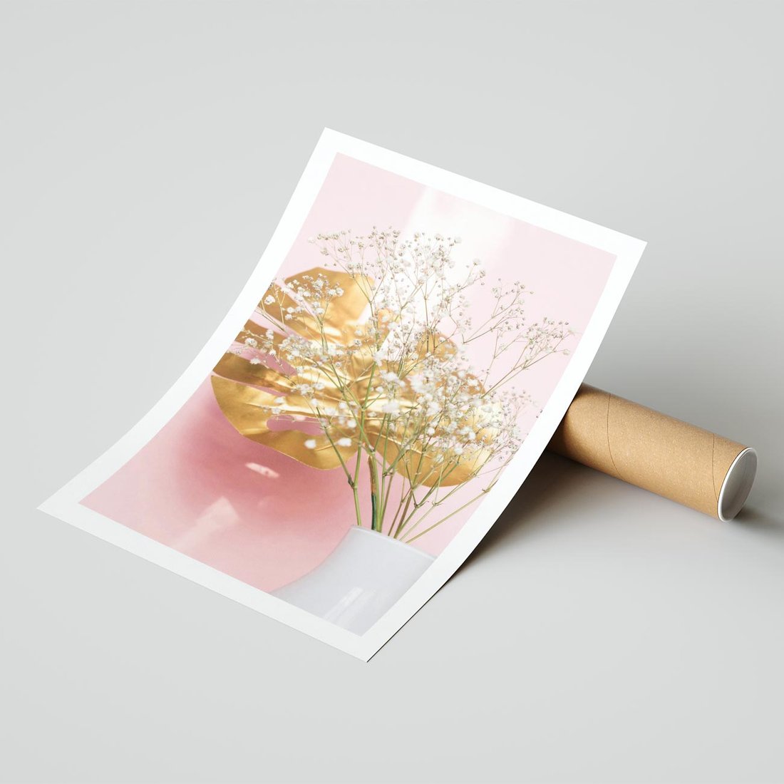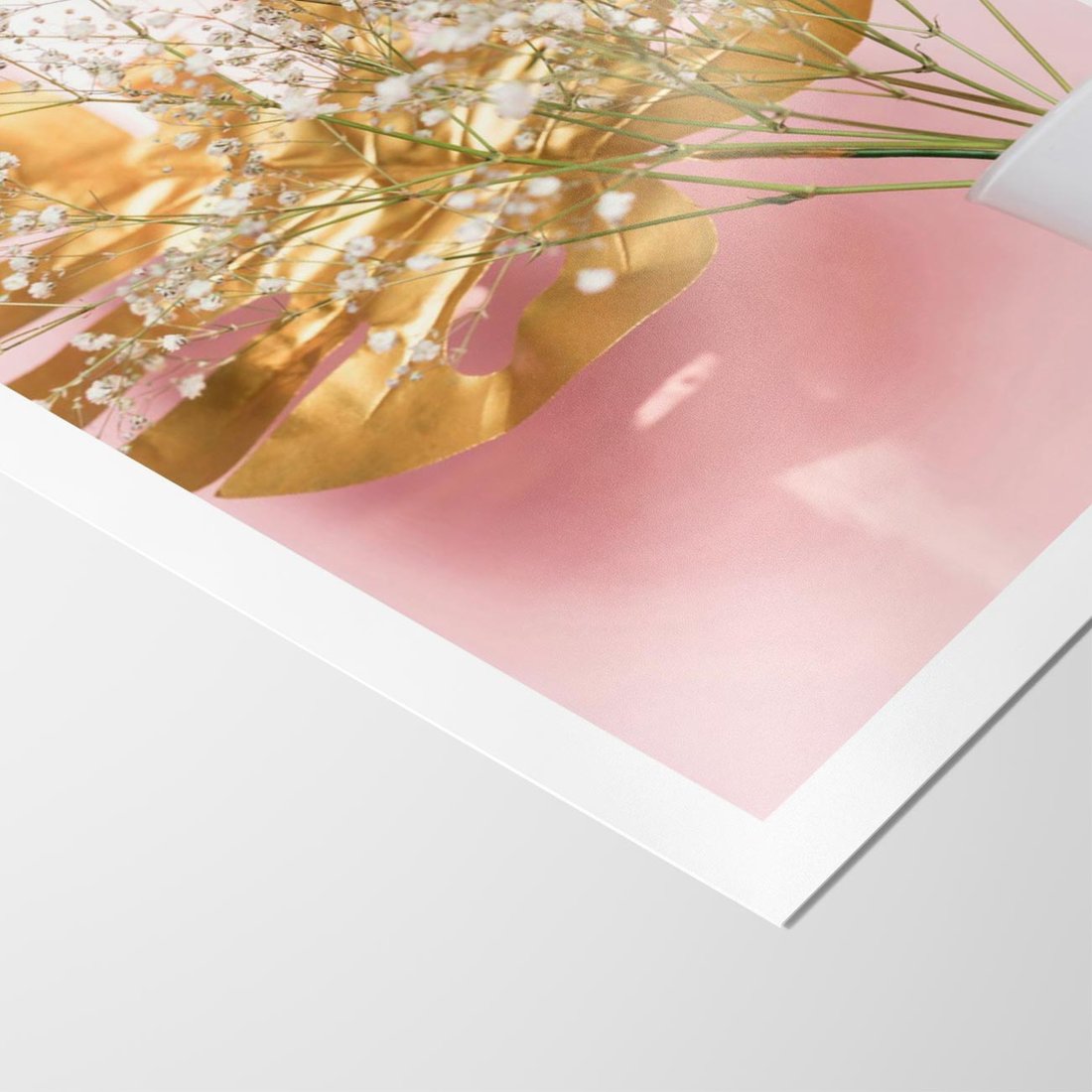 Plakat bez ramy 50x70 - Złoty Akcent - złoty liść montery, gipsówka