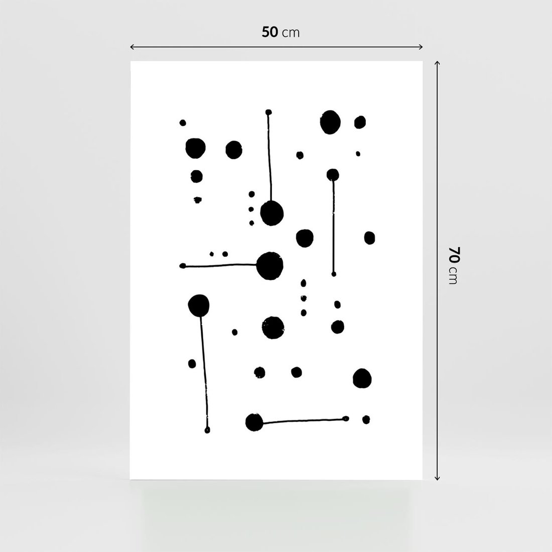 Nasz czarno-biały plakat to subtelne połączenie abstrakcji i minimalizmu, gdzie kropki i kreski tworzą misterną kompozycję. To delikatne wykorzystanie kontrastu, które zachwyca prostotą i elegancją. Ten plakat jest idealnym wyborem dla miłośników nowoczesnej sztuki, którzy cenią sobie wyrafinowany design i znaczeniowe detale.
