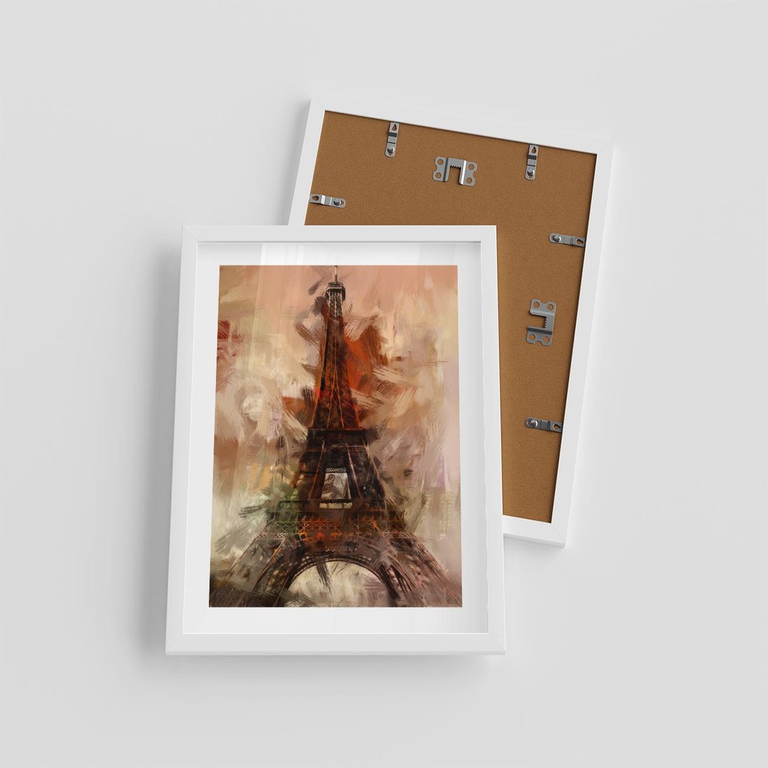 Plakat w ramie 30x40 - Abstrakcyjna Eiffla - miasto w nowej formie - Eiffla, abstrakcja - rama biała