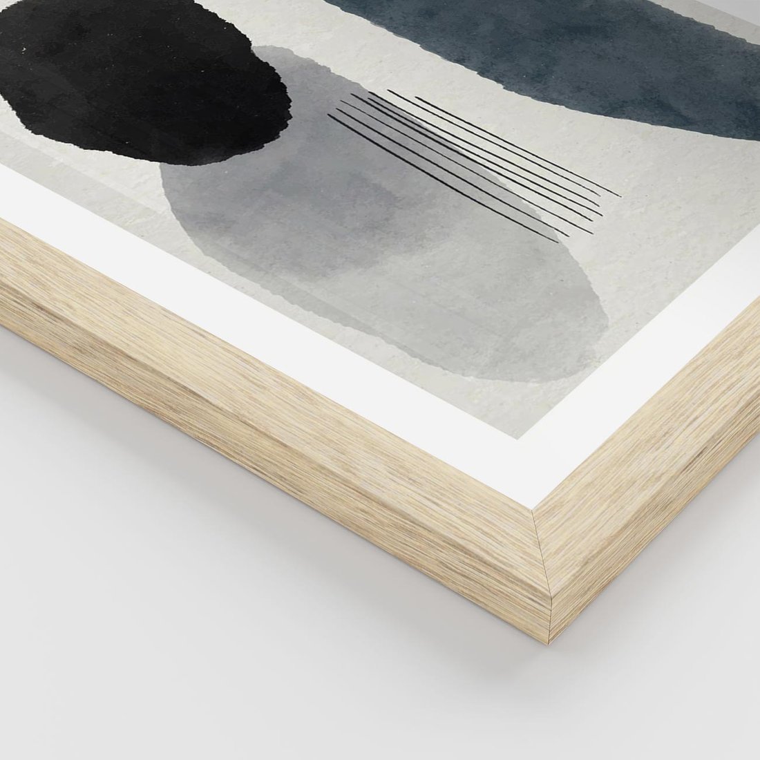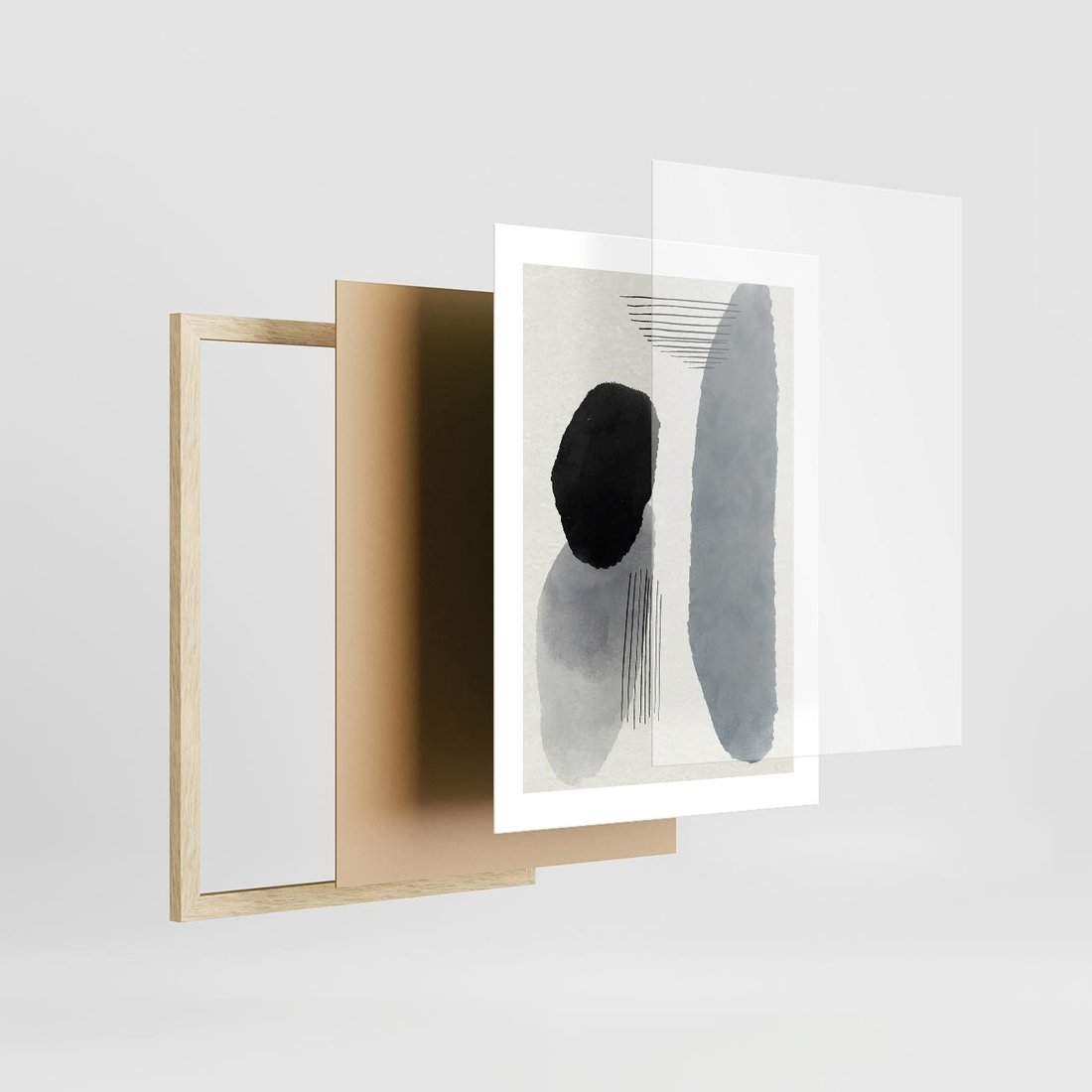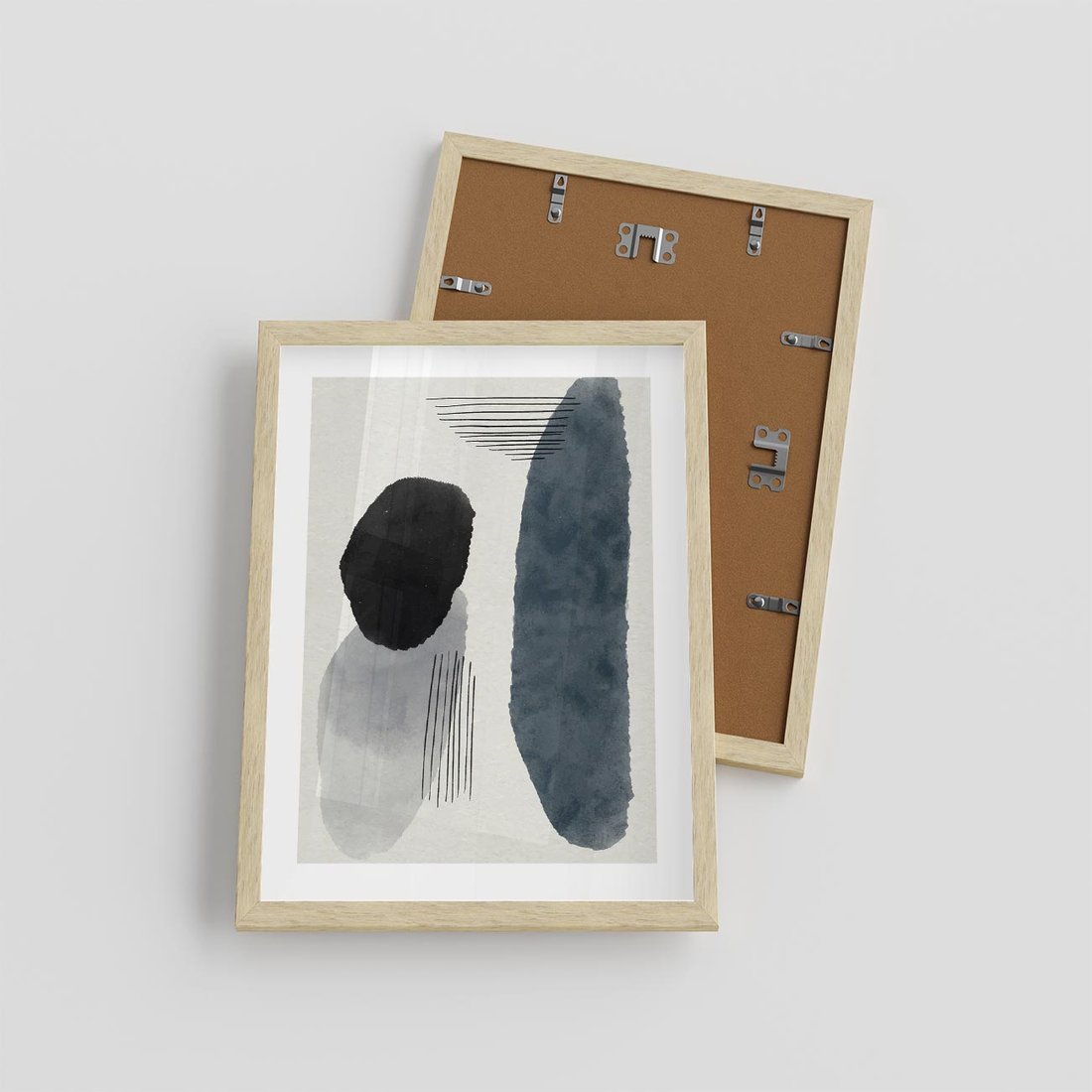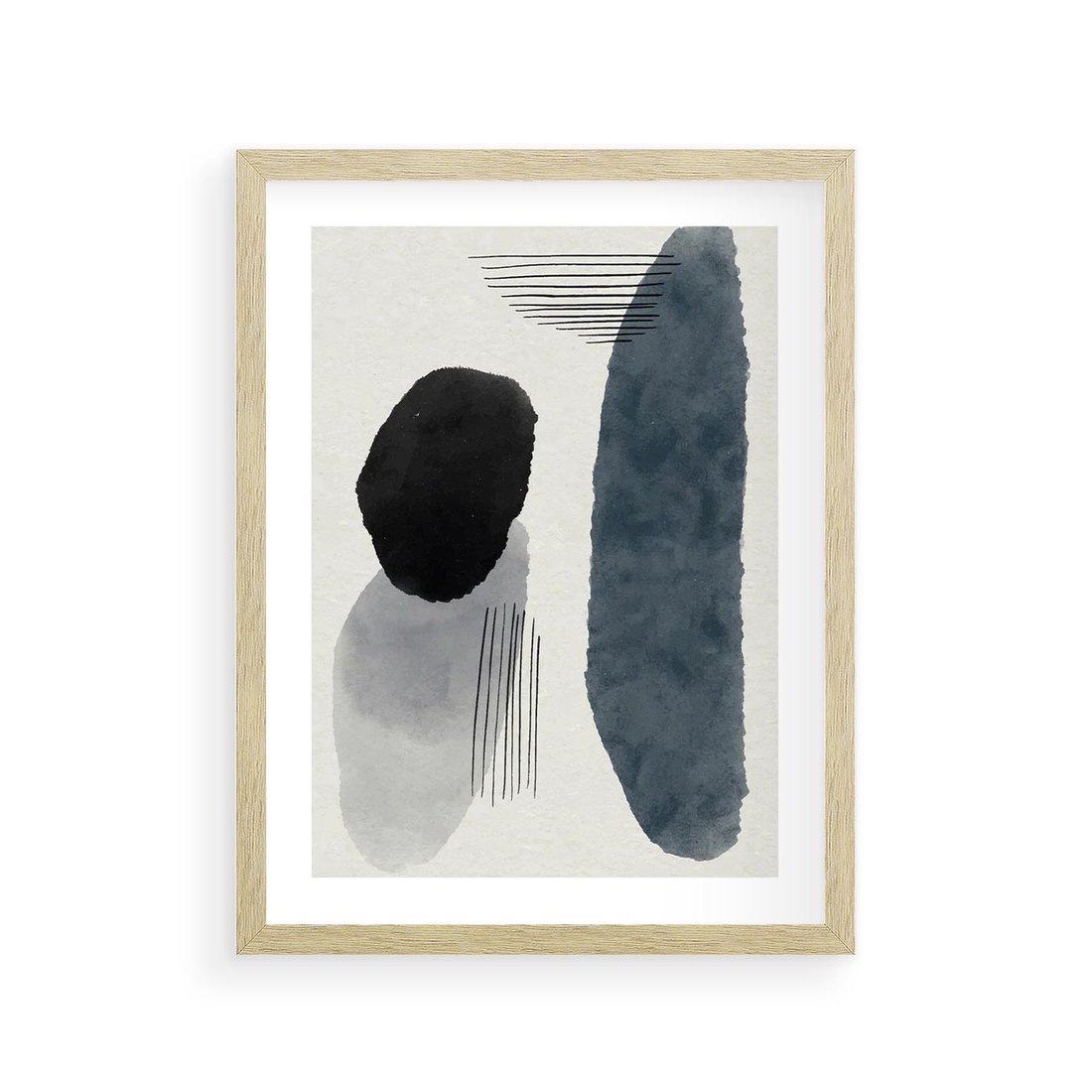 Plakat w ramie 30x40 - Abstrakcyjna Gra Szarości - abstrakcyjna grafika, akwarela - rama drewno