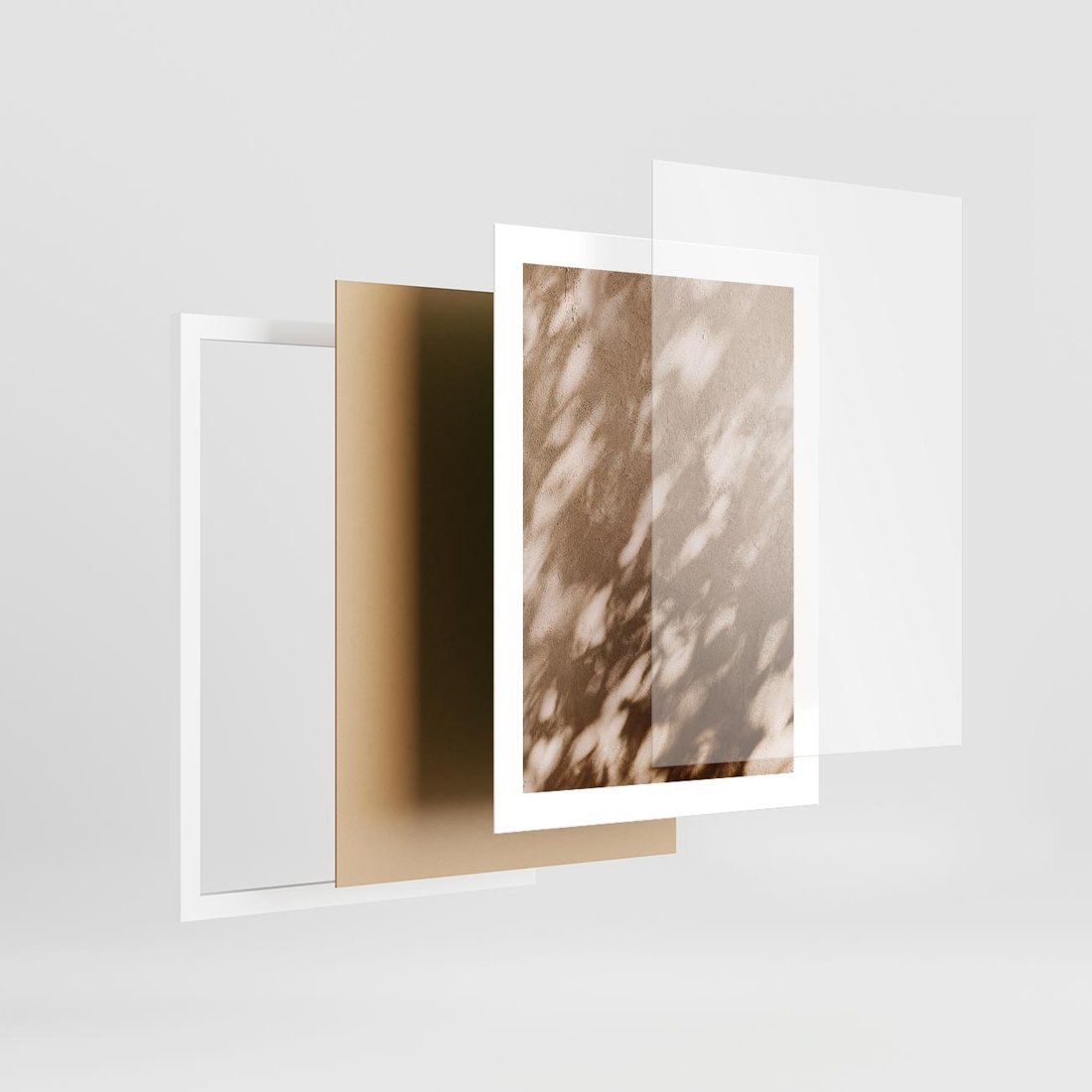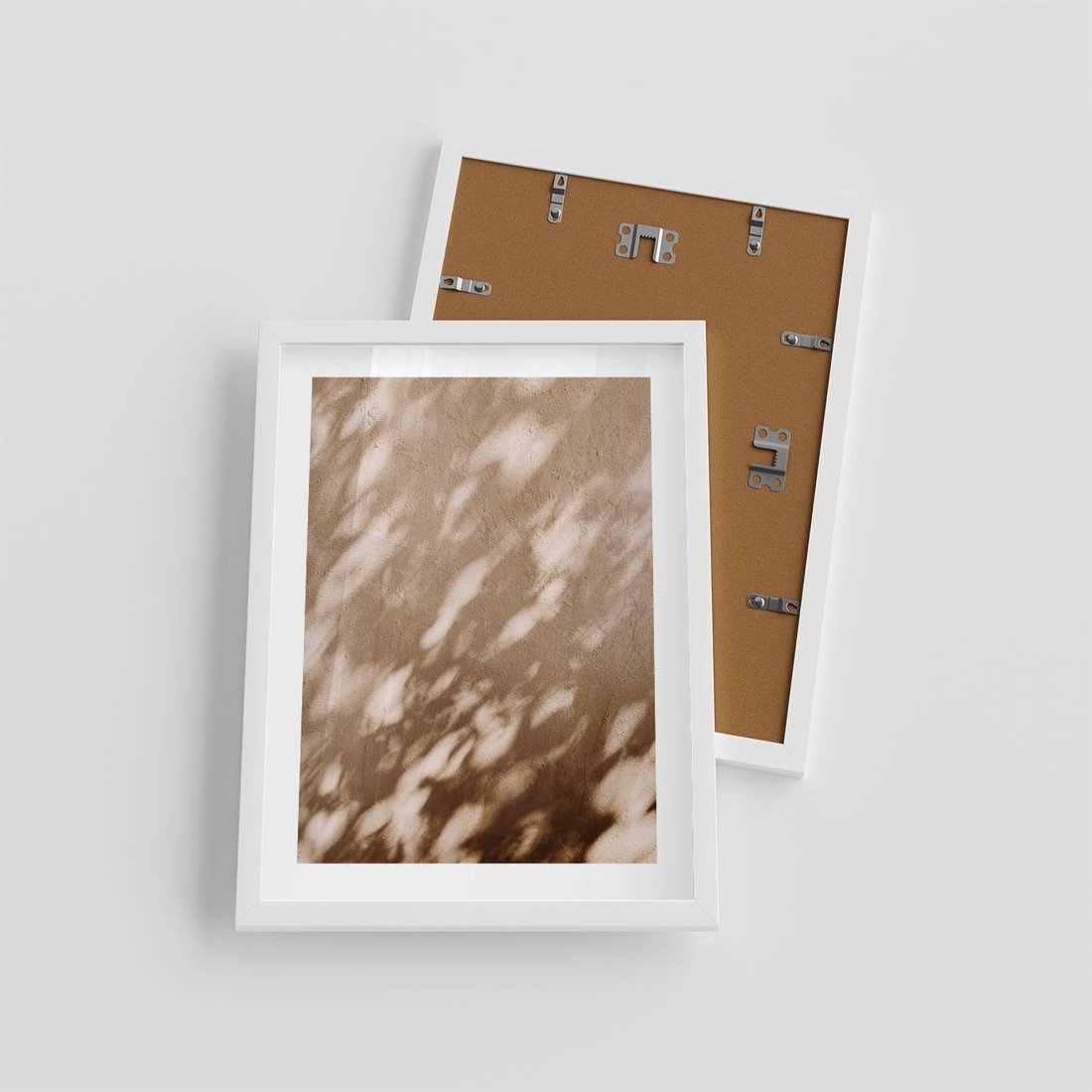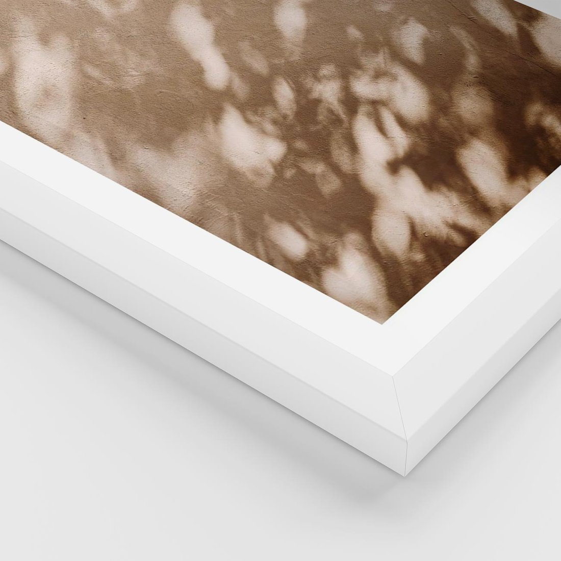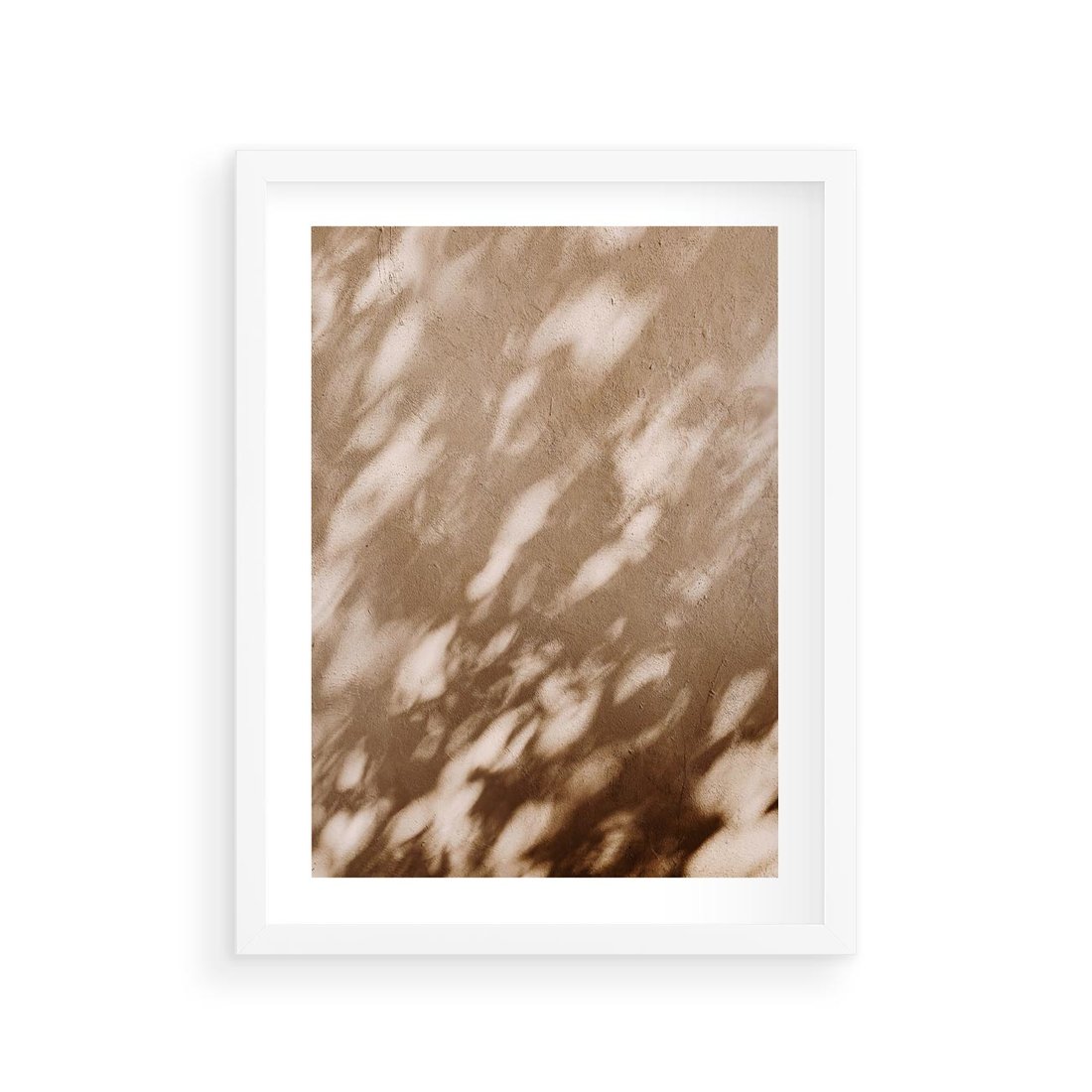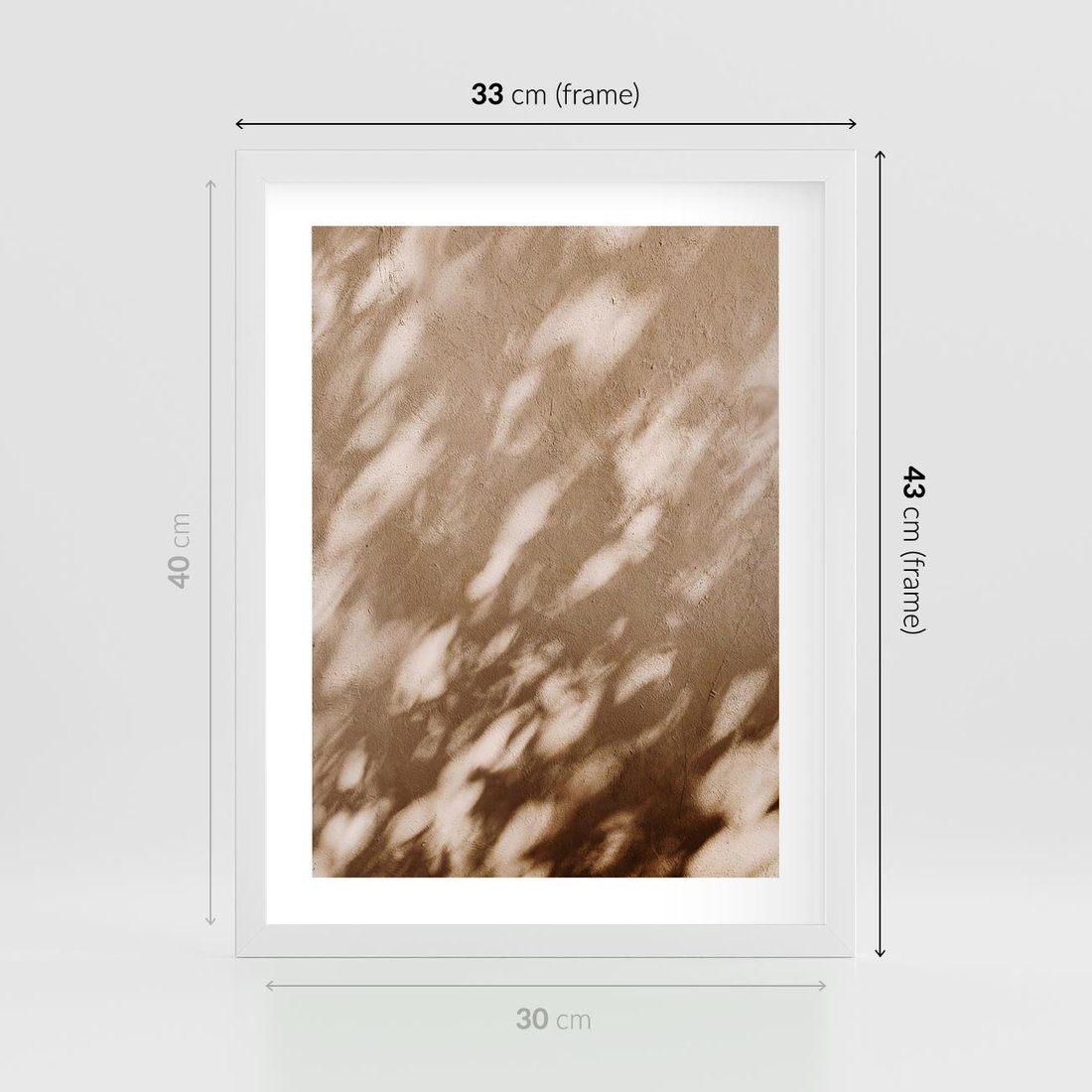 Plakat w ramie 30x40 - Abstrakcyjna Kompozycja: Cień na Ścianie - cień na ścianie, beżowe kolory - rama biała