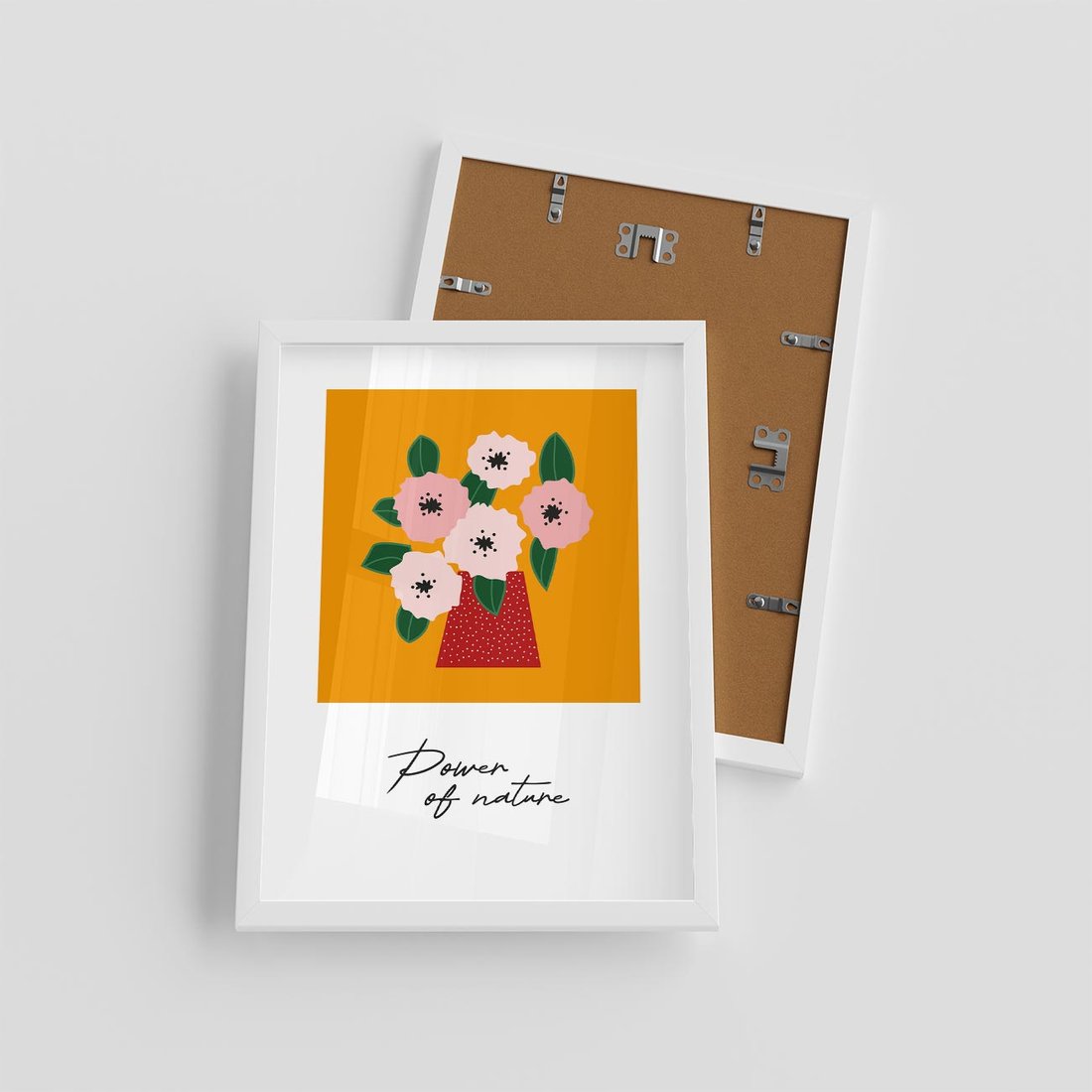 Ten plakat to połączenie sztuki nowoczesnej i abstrakcji, przedstawiający kwiaty w wazonie na intensywnym żółtym tle. Kompozycja ta tworzy wyrazistą wizualną ekspresję, przynosząc do przestrzeni odrobinę jasności i energii w formie artystycznego wydźwięku.