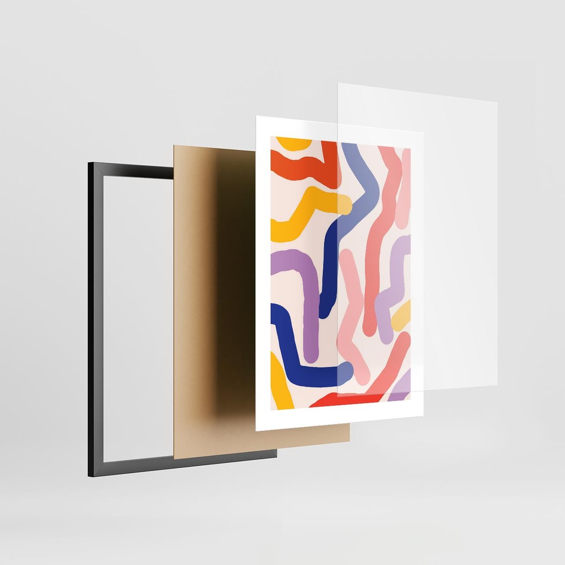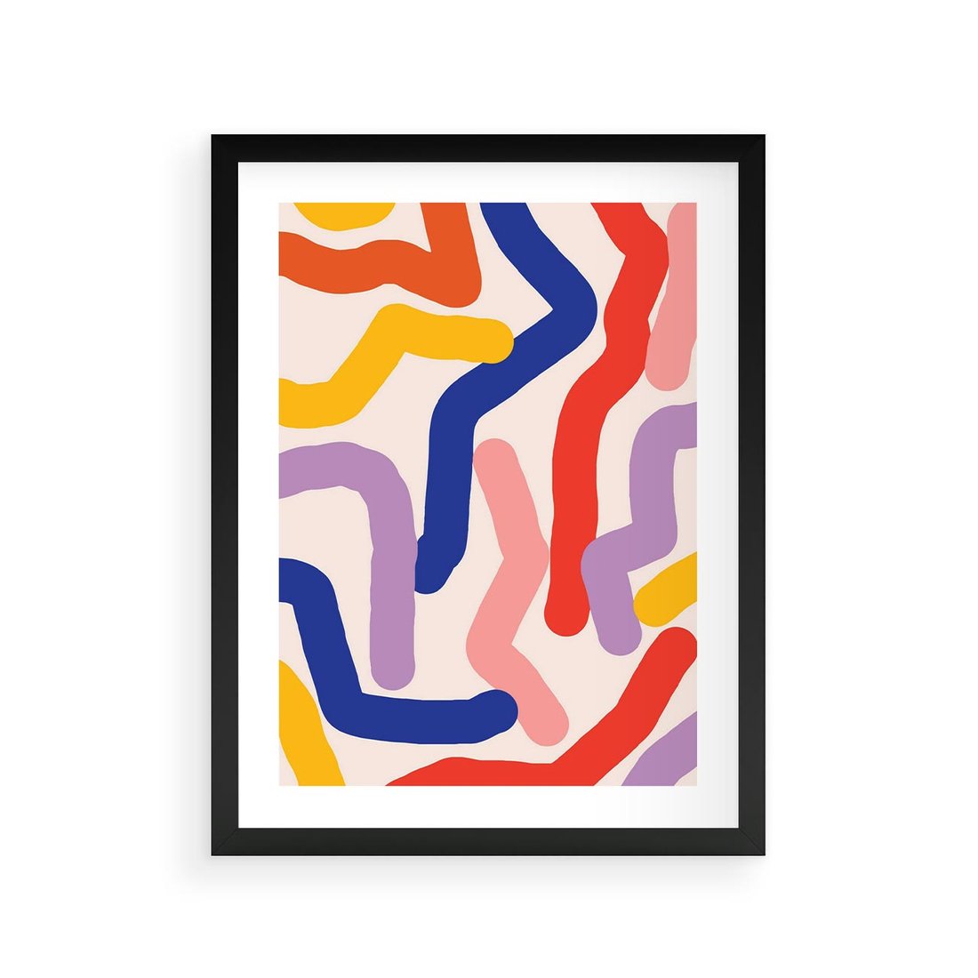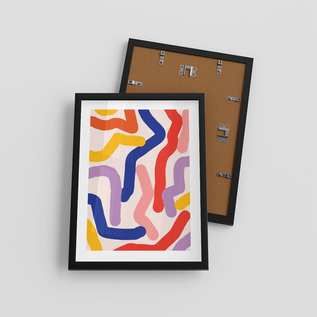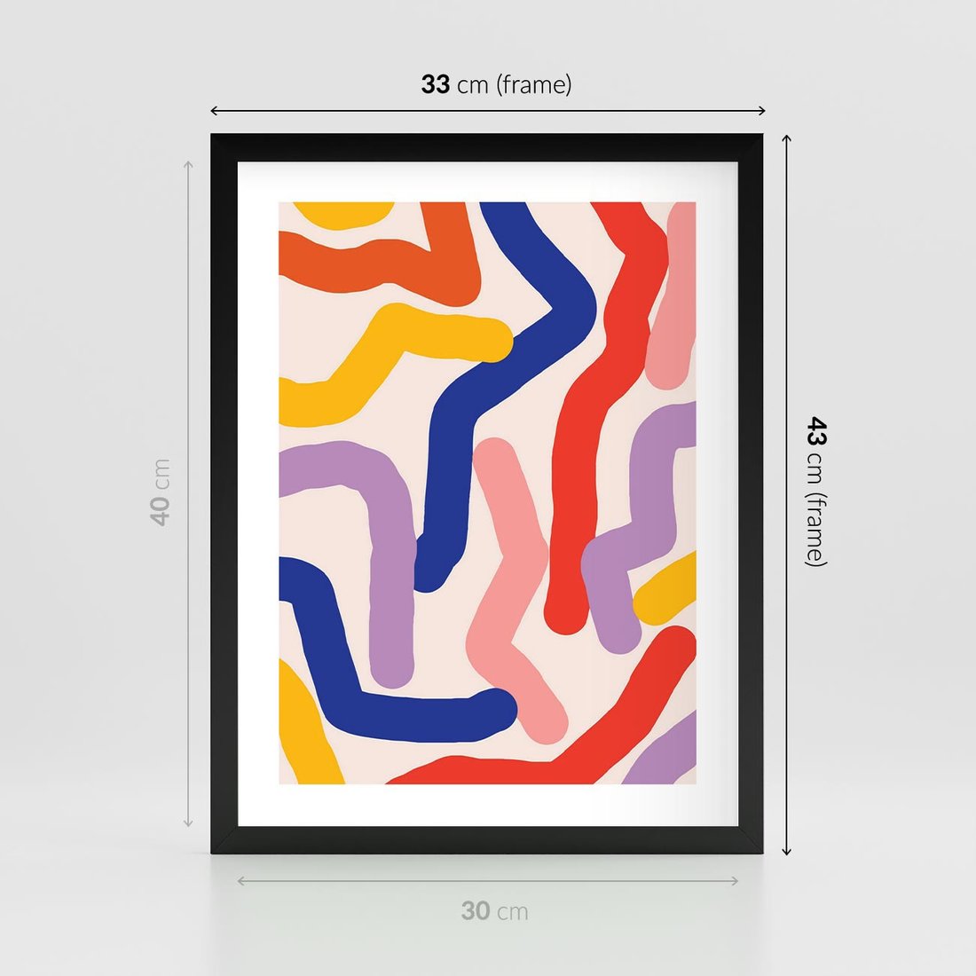 Plakat w ramie 30x40 - Abstrakcyjne Dialogi - abstrakcyjny kolorowy obraz, kolorowe linie - rama czarna