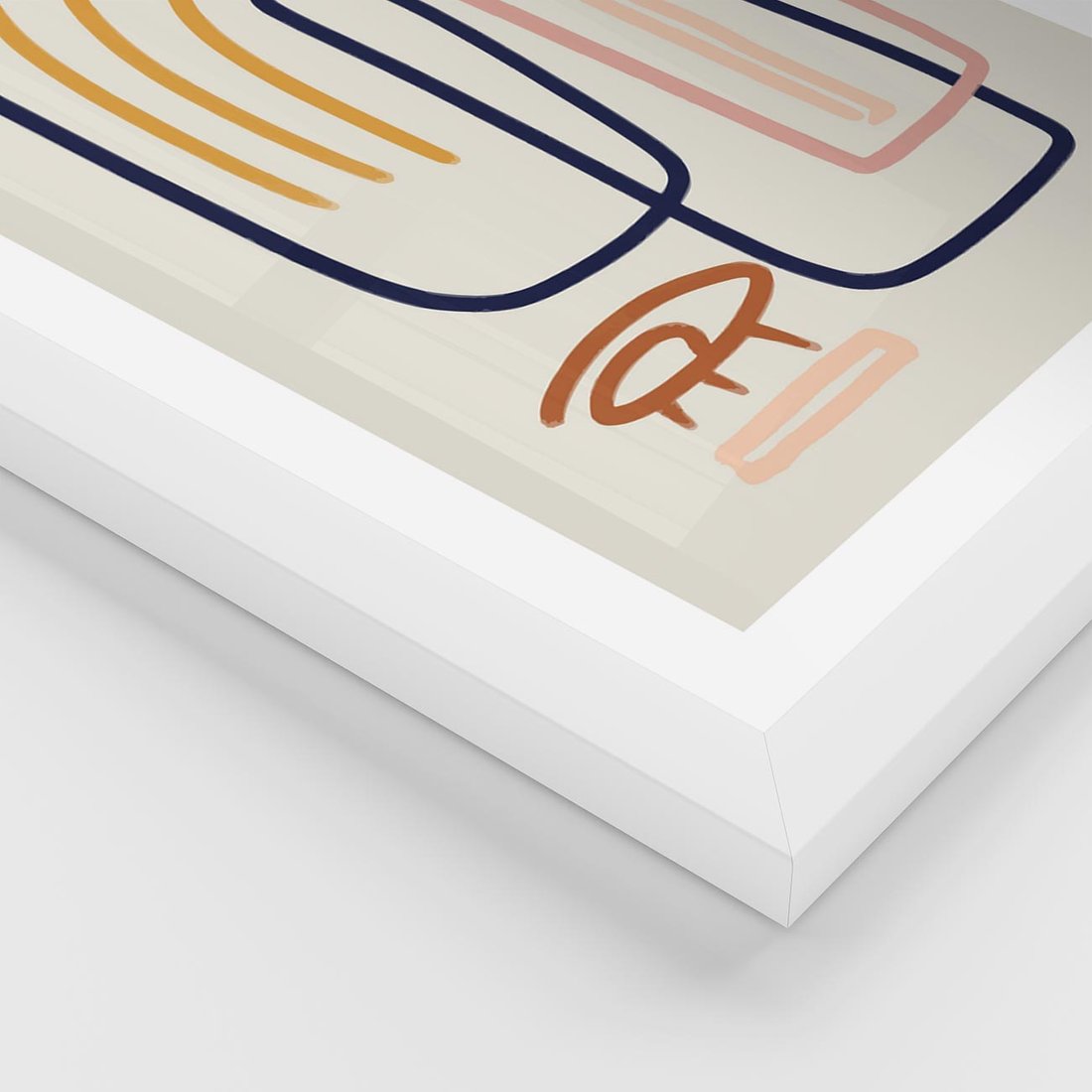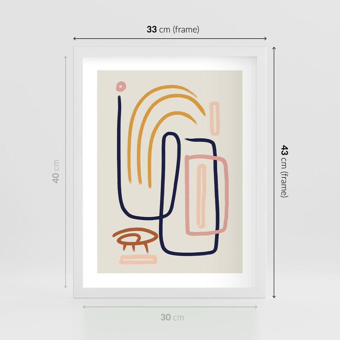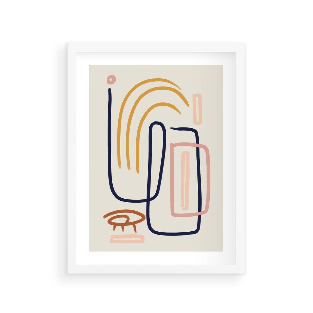 Plakat w ramie 30x40 - Abstrakcyjne Mrugnięcie - abstrakcja w stylu picasso, beżowe tło - rama biała