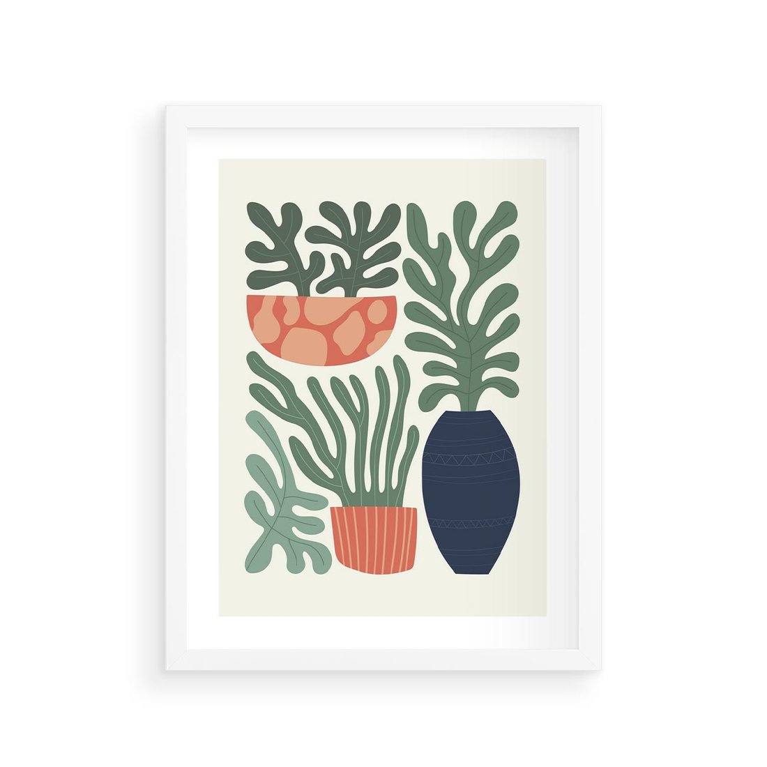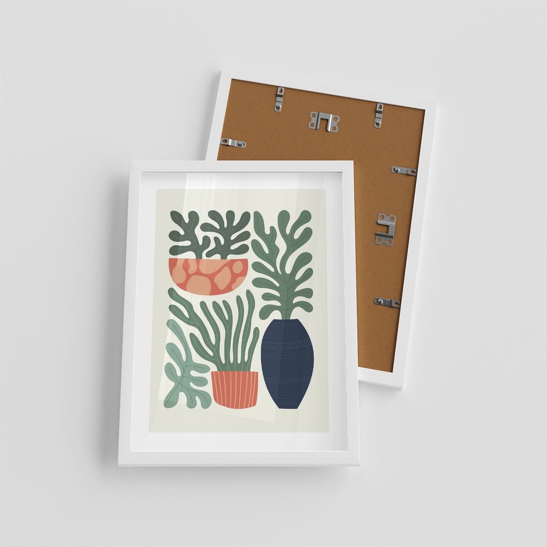 Plakat w ramie 30x40 - Abstrakcyjne Roślinne Formy - nowoczesna grafika, rośliny - rama biała