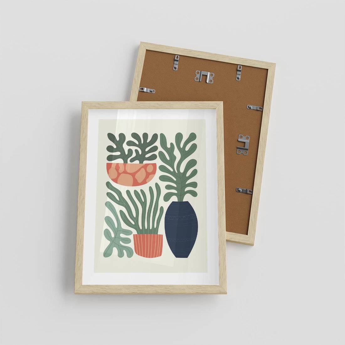 Plakat w ramie 30x40 - Abstrakcyjne Roślinne Formy - nowoczesna grafika, rośliny - rama drewno