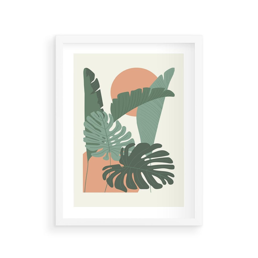 Plakat w ramie 30x40 - Abstrakcyjne Tropiki - liście, rośliny tropikalne w graficznym stylu - rama biała