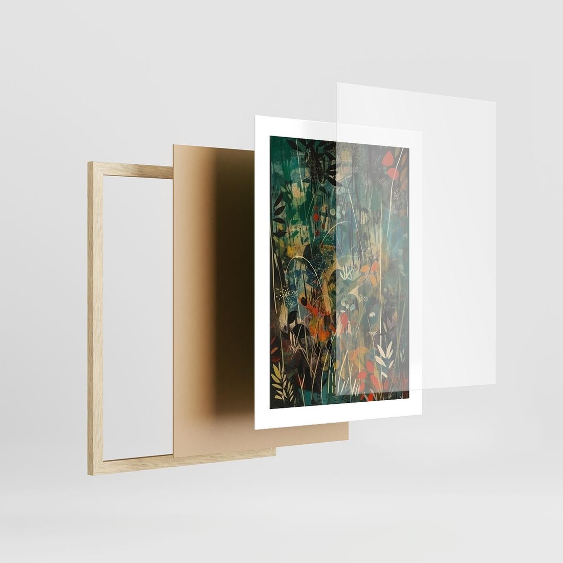 Plakat w ramie 30x40 - Abstrakcyjne Wariacje Form - abstrakcyjny obraz, mnogość kolorów - rama drewno