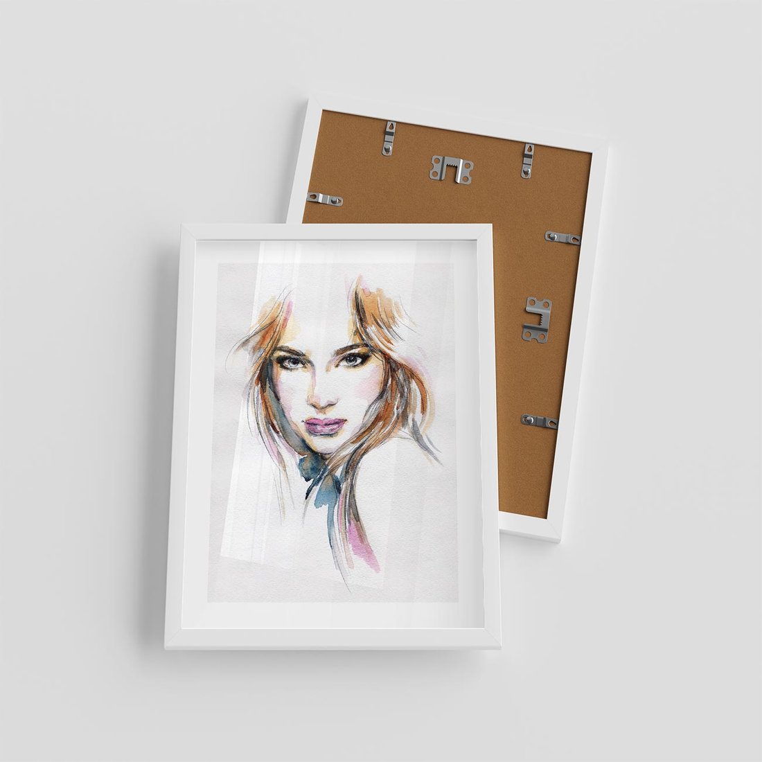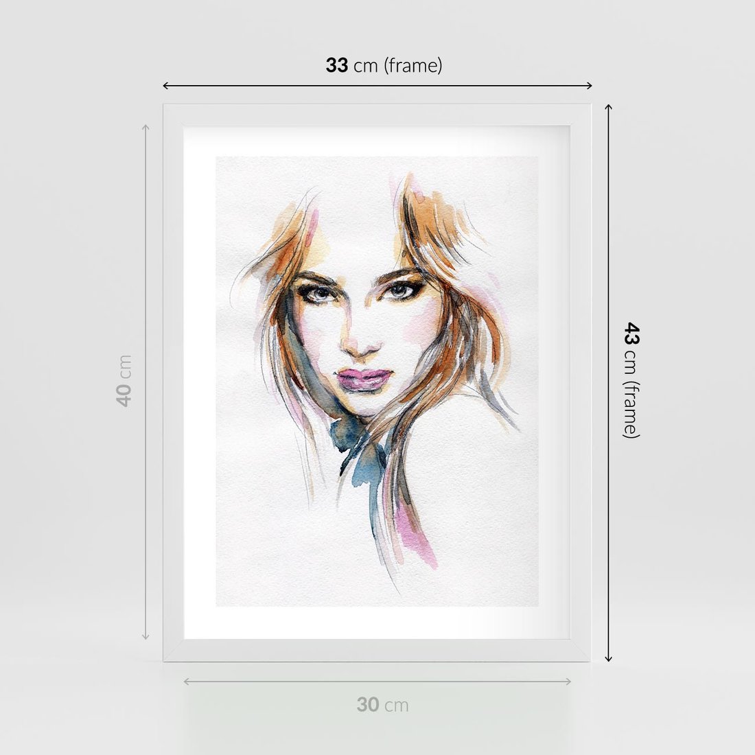 Plakat w ramie 30x40 - Abstrakcyjny portret kobiecy - grafika, kobieta - rama biała