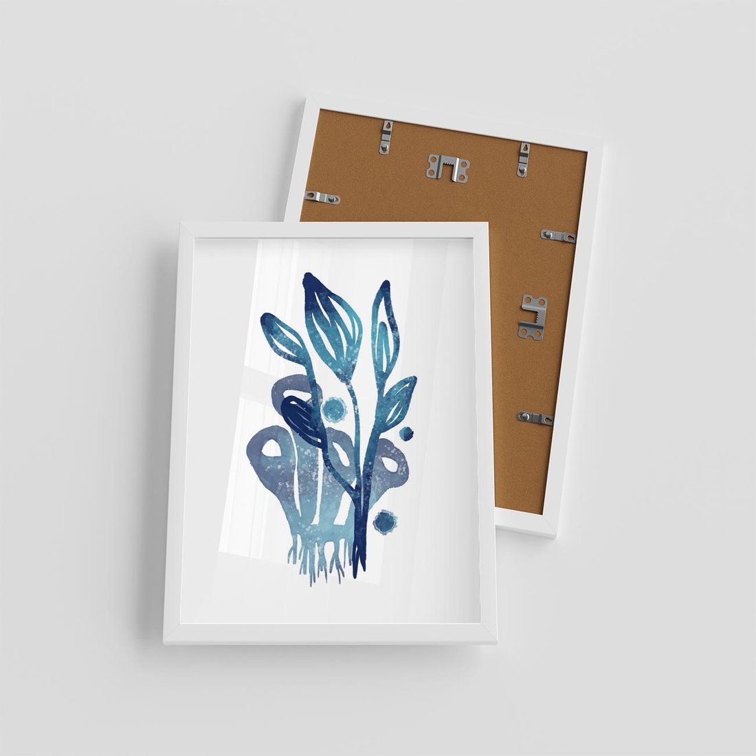 Ten pastelowy plakat prezentuje abstrakcyjny akwarelowy rysunek liści w delikatnym odcieniu błękitu. To dzieło sztuki wniesie do Twojej przestrzeni spokój i świeżość, tworząc jednocześnie interesujący akcent artystyczny. Idealny wybór dla miłośników delikatnych i harmonijnych kompozycji.