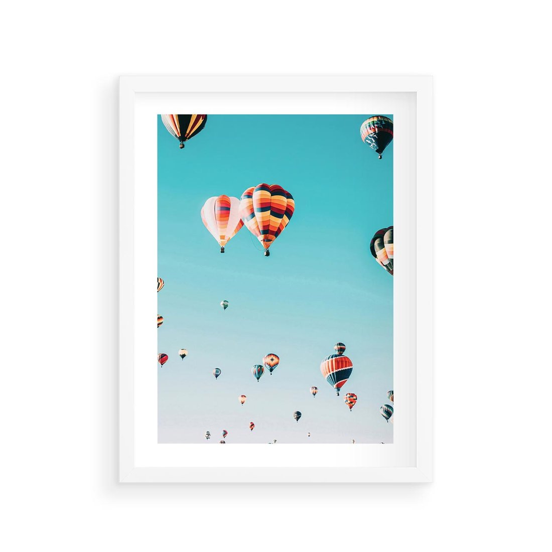 Plakat w ramie 30x40 - Balonowa Ekscytacja - balony latają w powietrzu, wyścigi balonów - rama biała