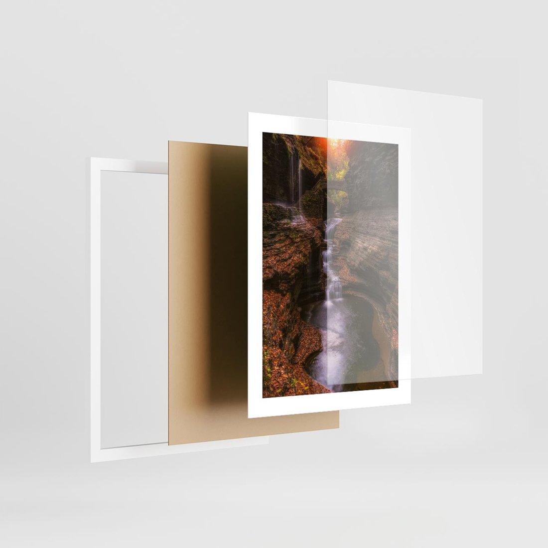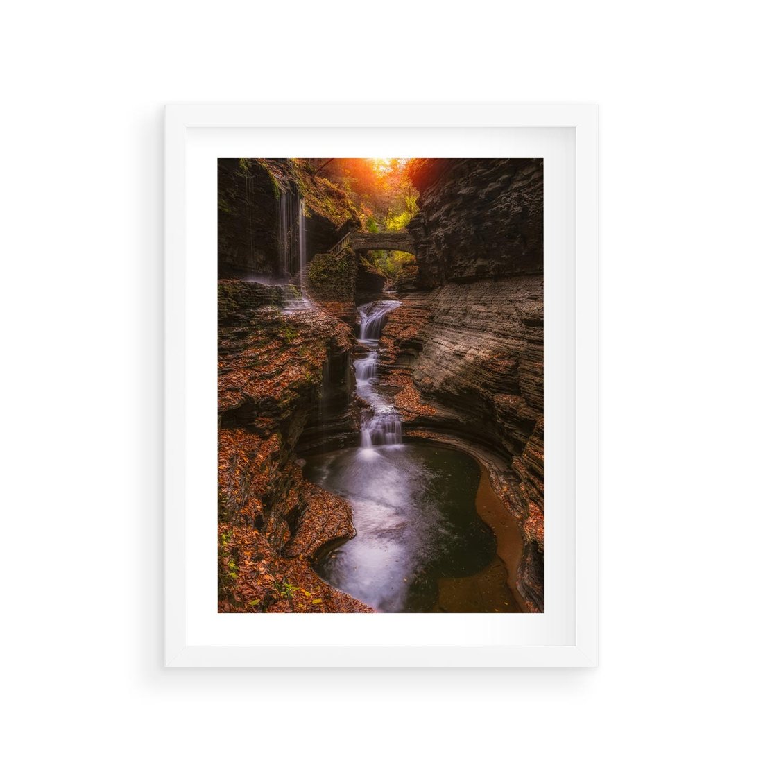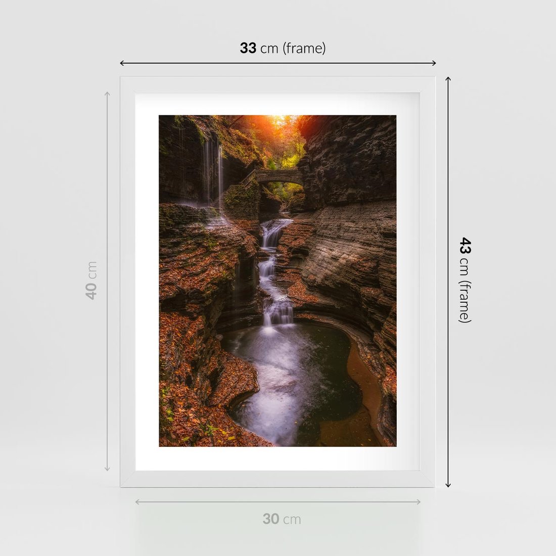 Plakat w ramie 30x40 - Barwna Harmonia - strumień, las - rama biała