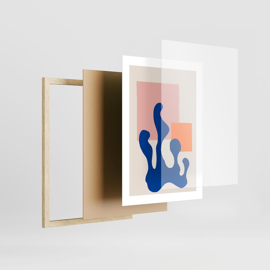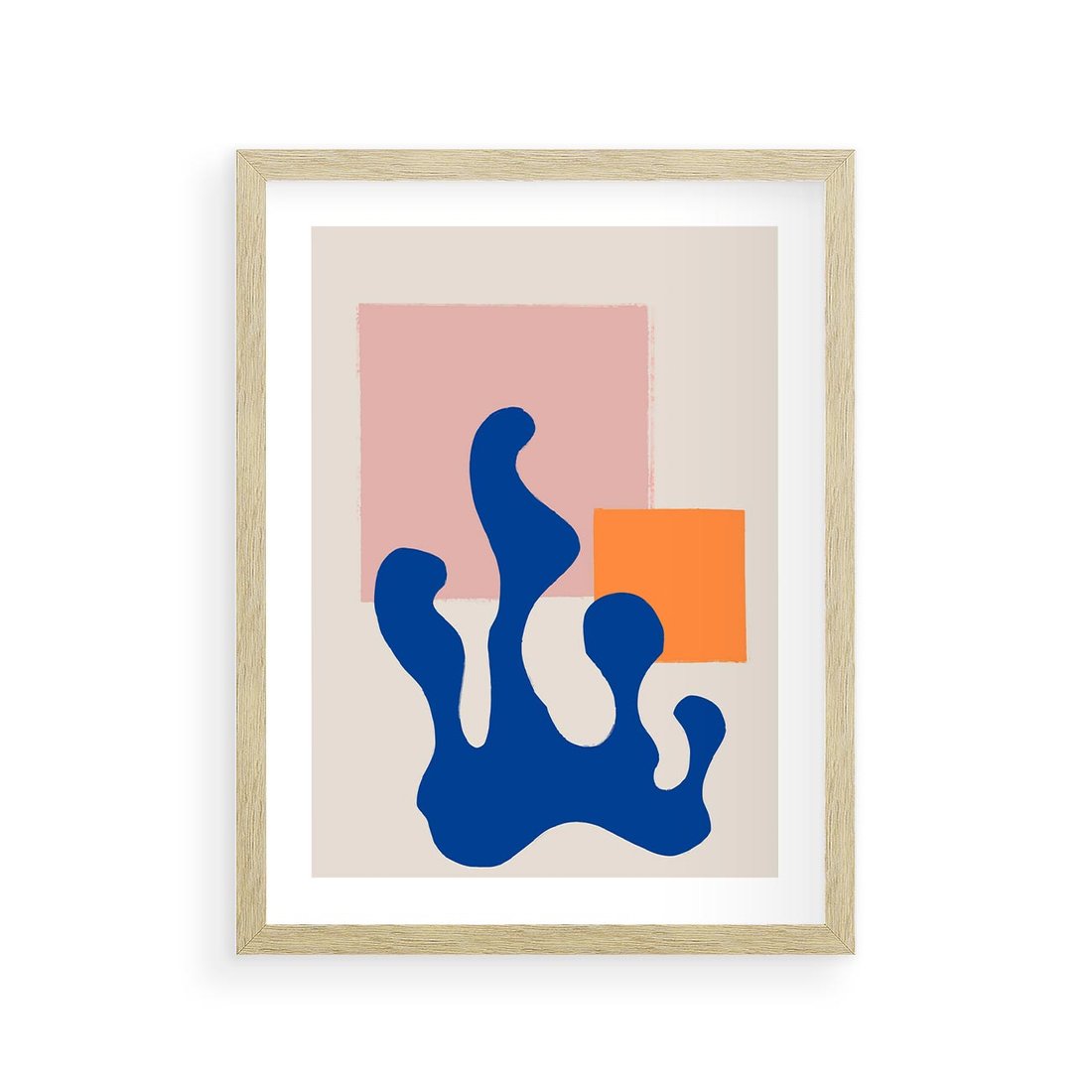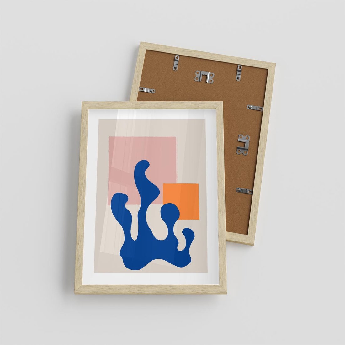 Ten nowoczesny plakat jest prawdziwym dziełem abstrakcyjnej sztuki, w którym dominują geometryczne kształty w intensywnych kolorach: pomarańczowym i granatowym. To dzieło łączy w sobie nowoczesność z abstrakcją, tworząc efektowną i energetyczną kompozycję. Idealny wybór dla miłośników sztuki nowoczesnej i wyrazistych wzorów.