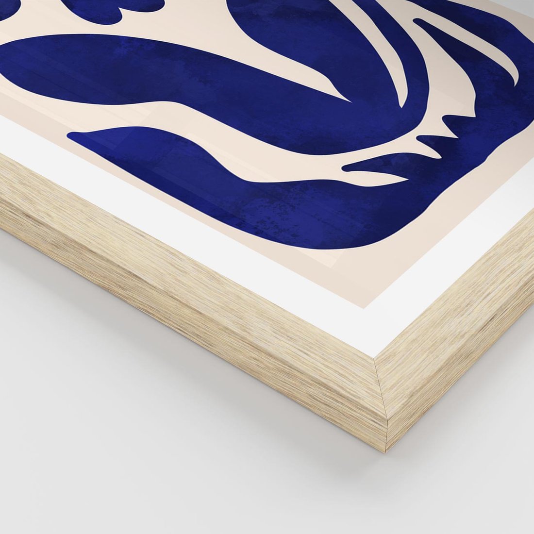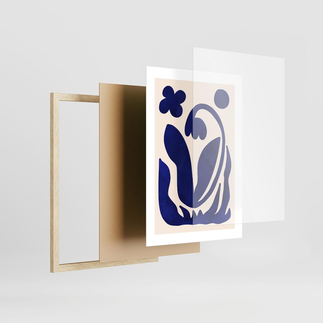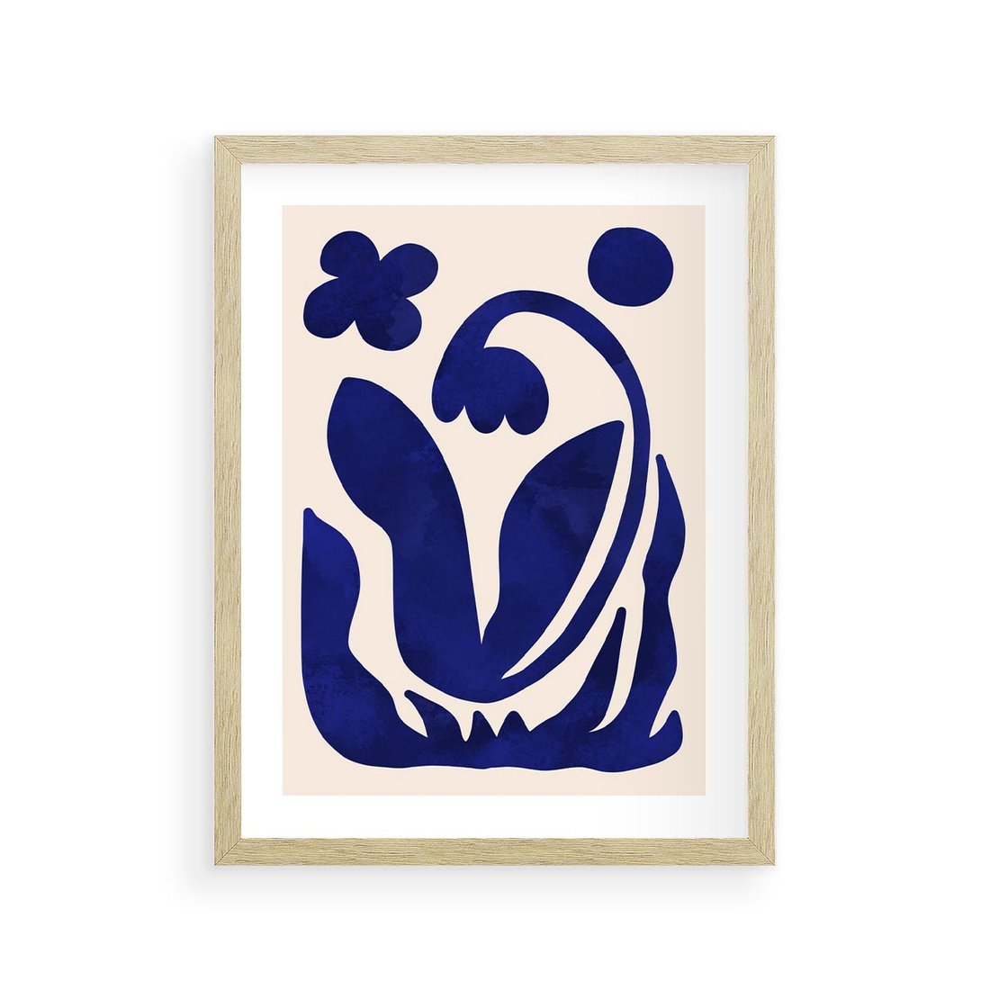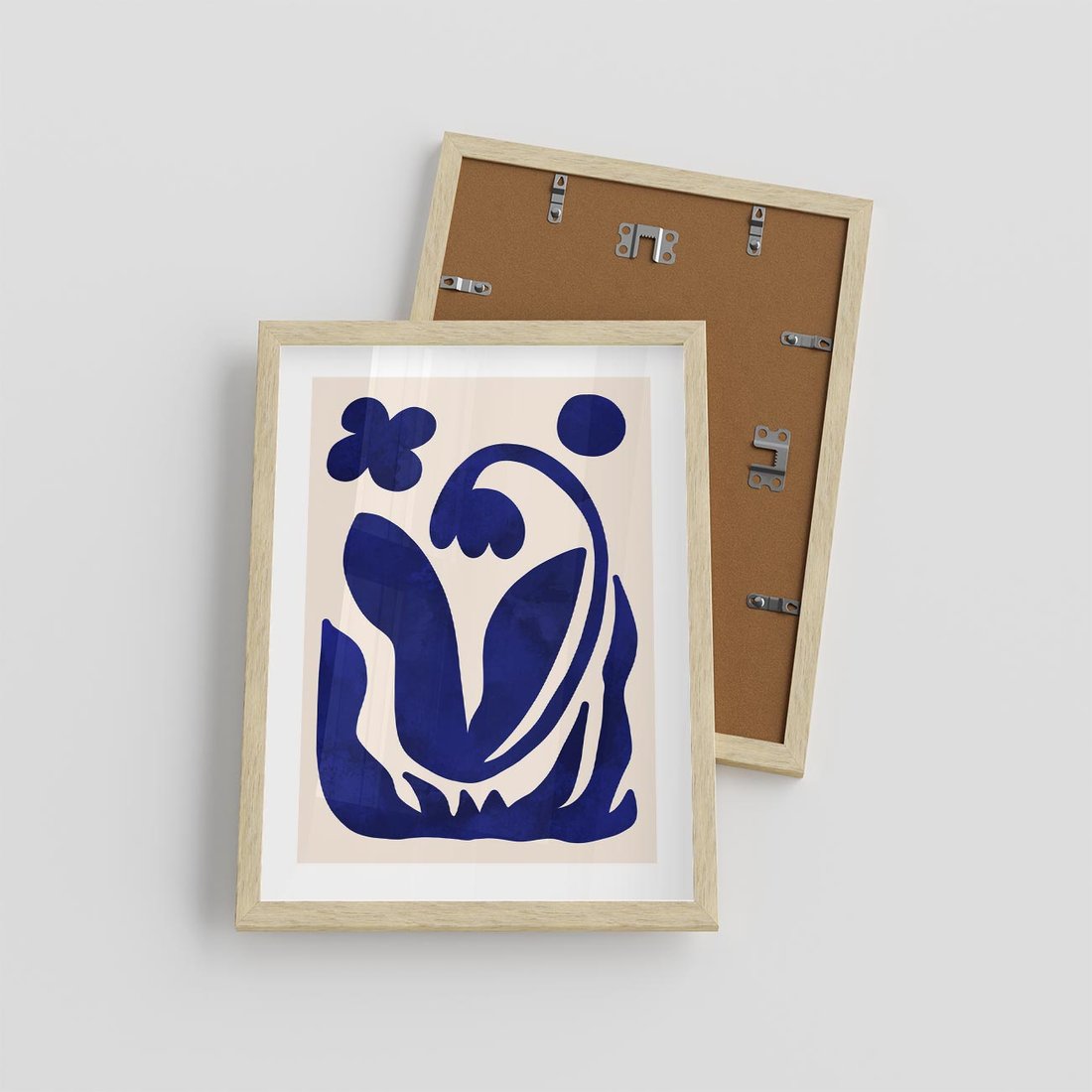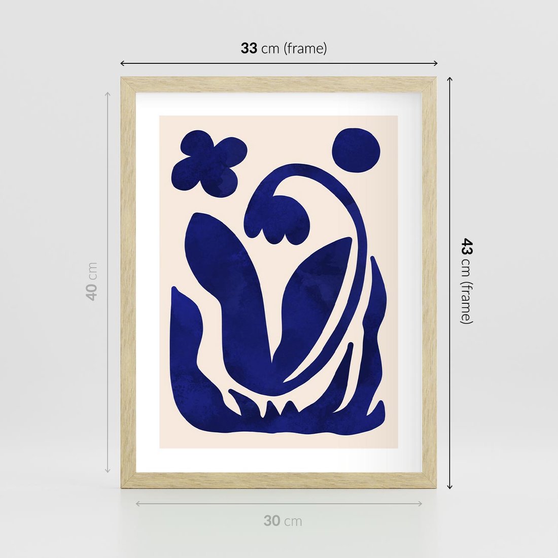 Plakat w ramie 30x40 - Bezgraniczne Echa Serca - abstrakcyjny obraz plakat, dziwne niebieskie kształty przypominają kwiat - rama drewno
