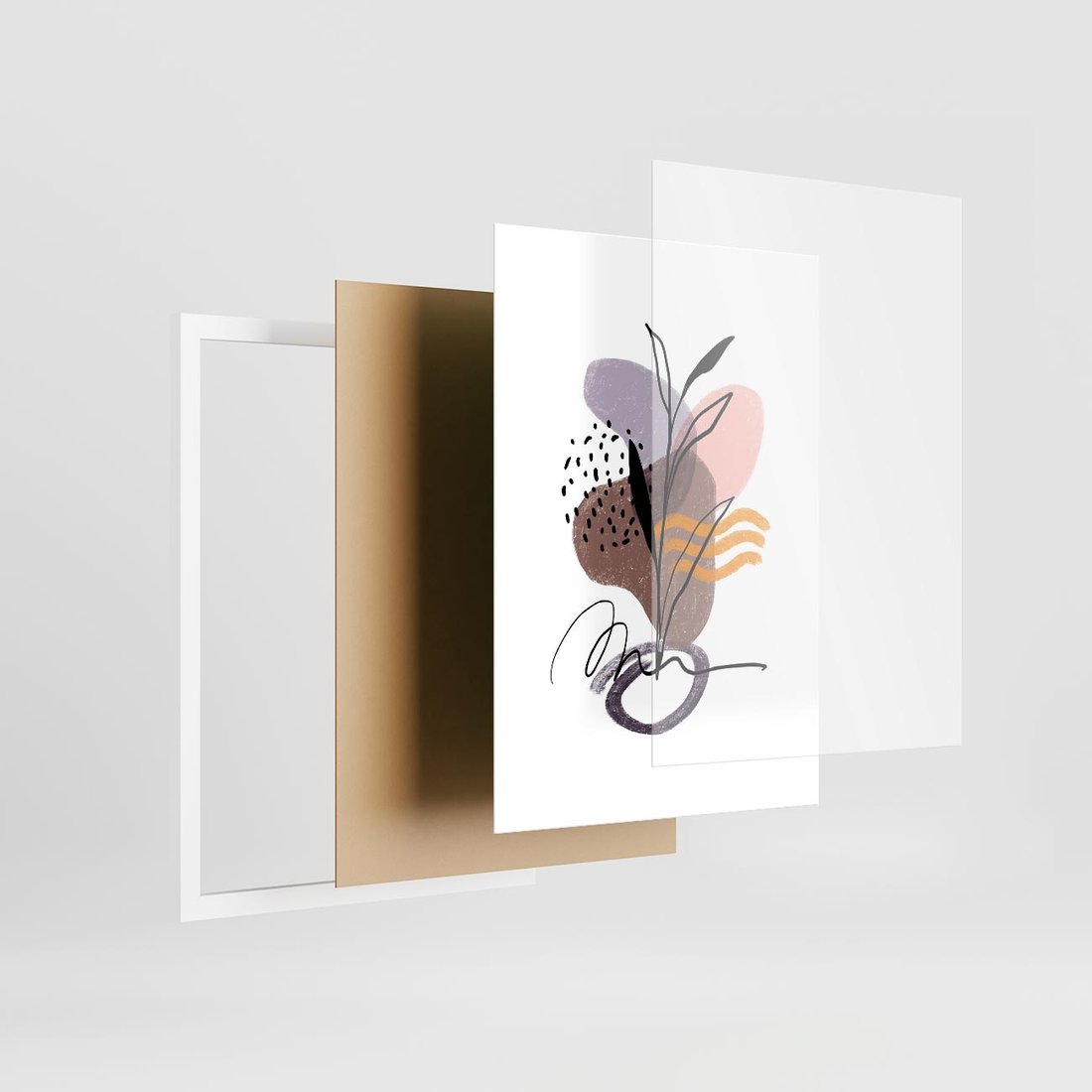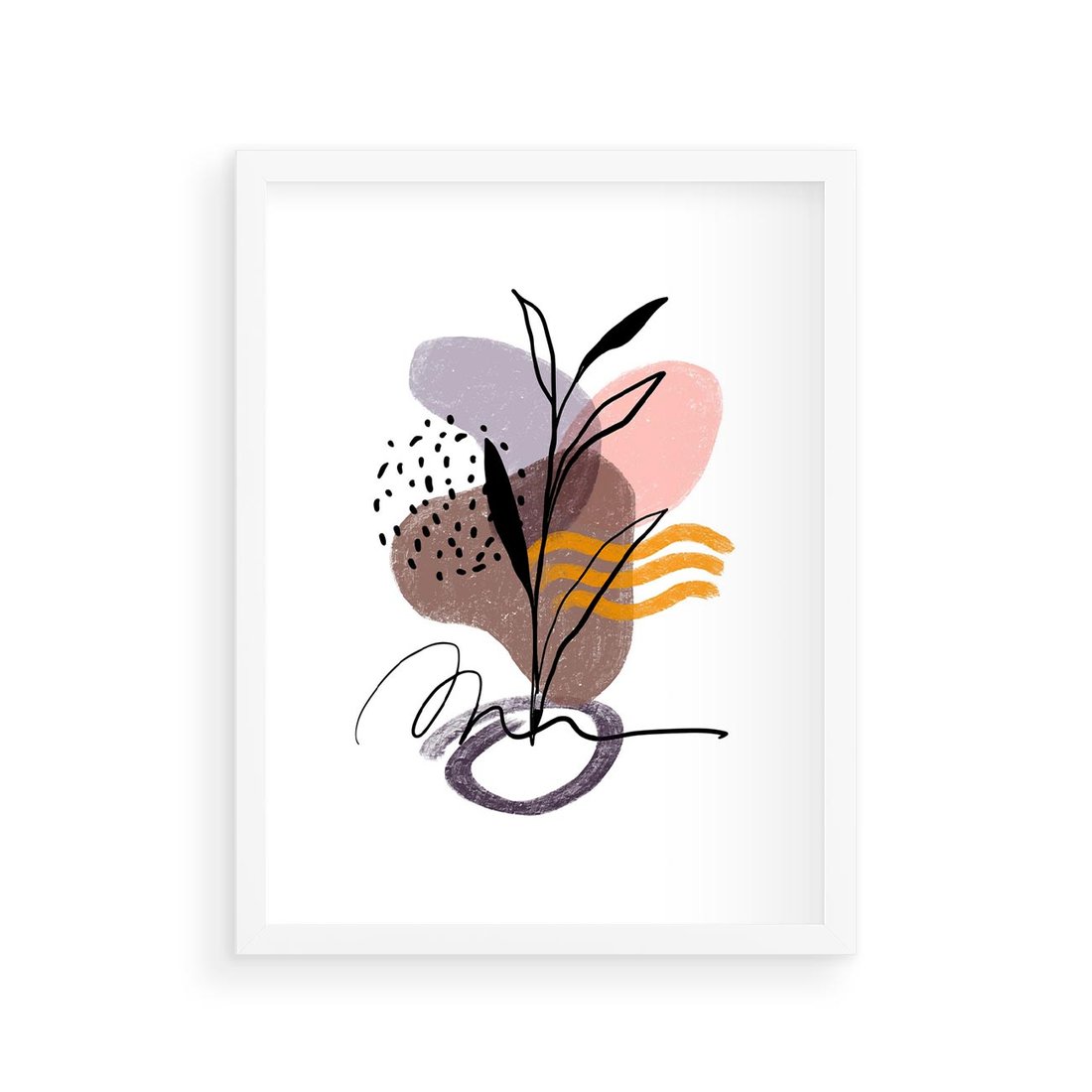 Nasza sztuka abstrakcyjna to połączenie nowoczesności i natury, prezentujące elementy roślinne w formie czarnego szkicu z akwarelowymi plamami. To twórcze połączenie wprowadza do Twojej przestrzeni unikalny wyraz artystyczny, który łączy różnorodność form i stylów.