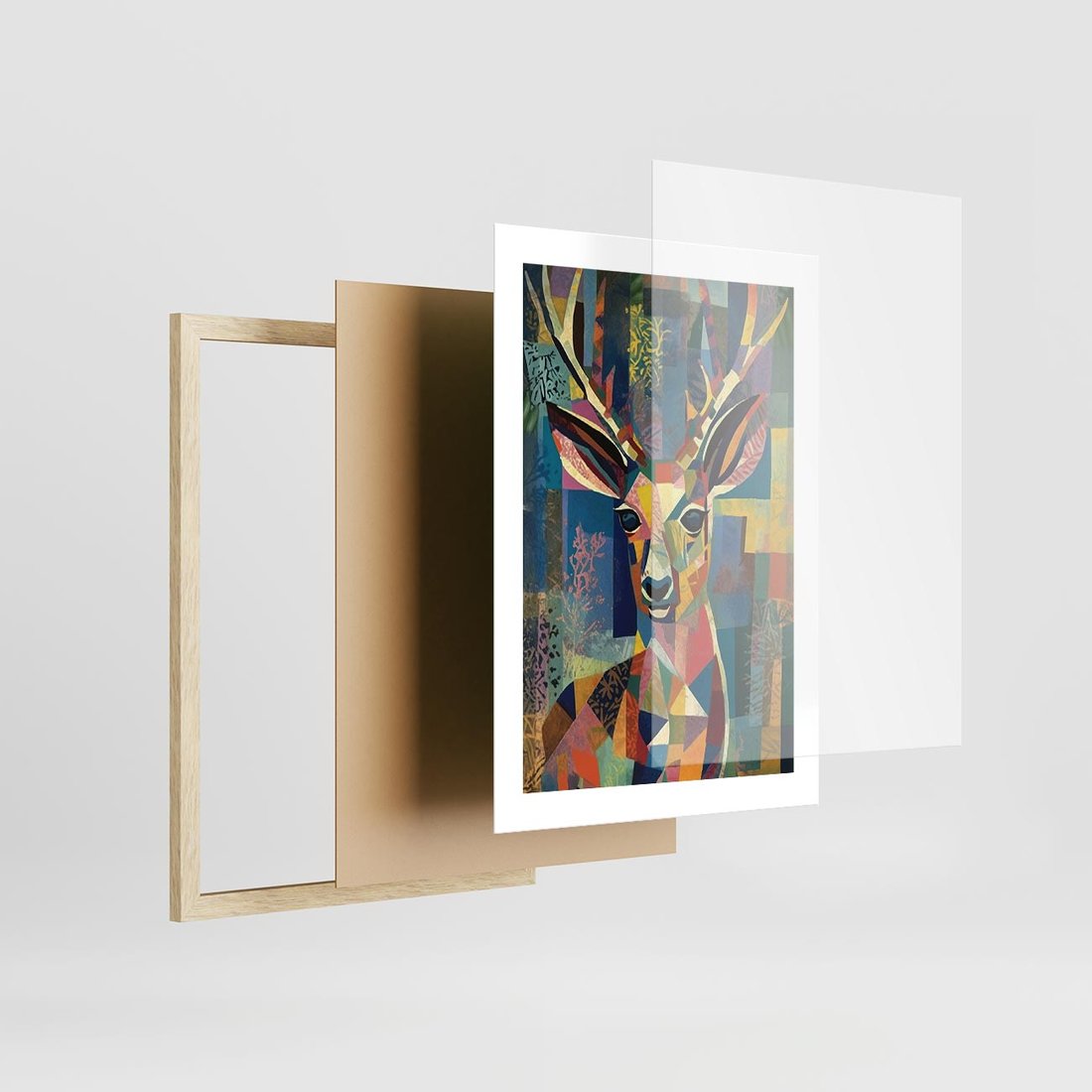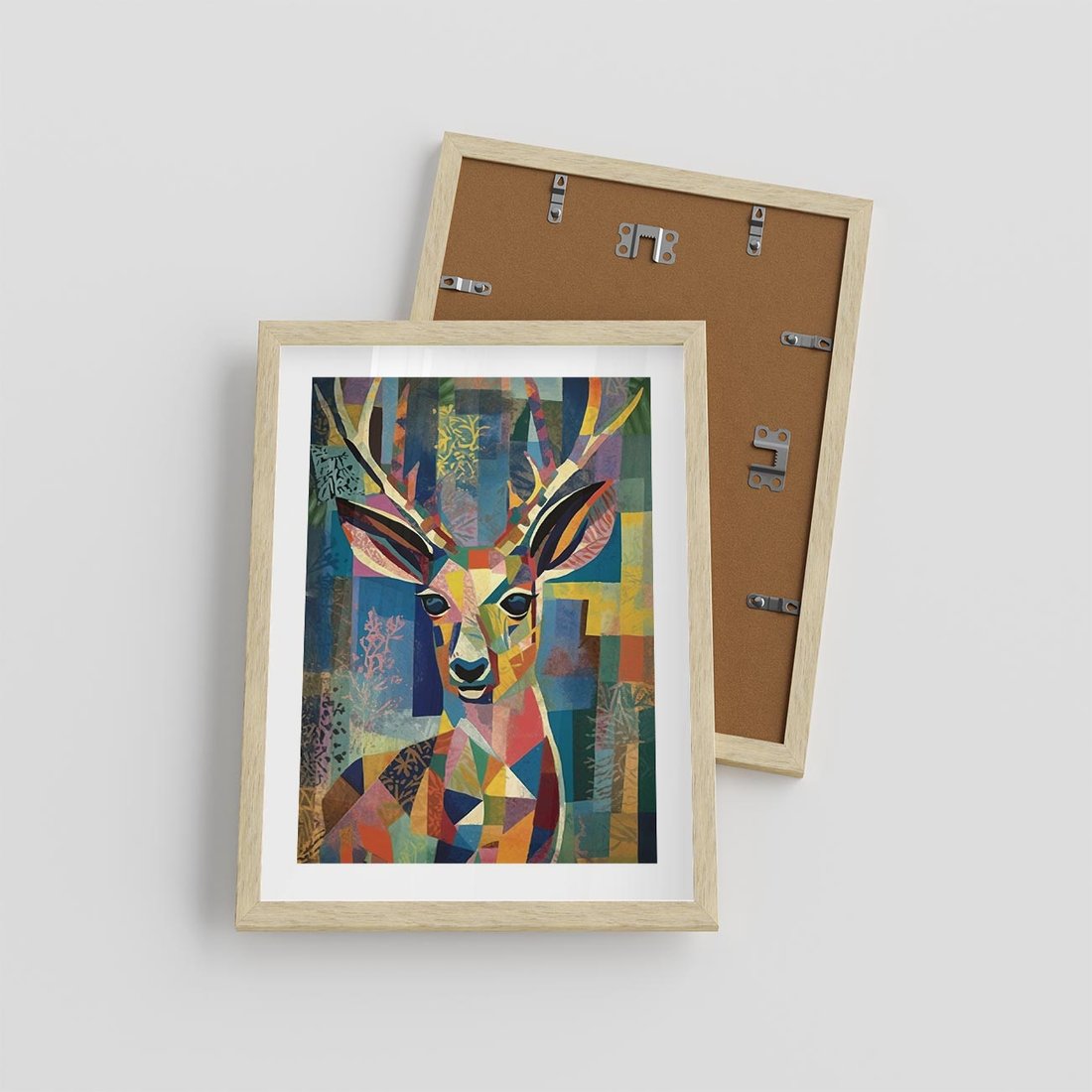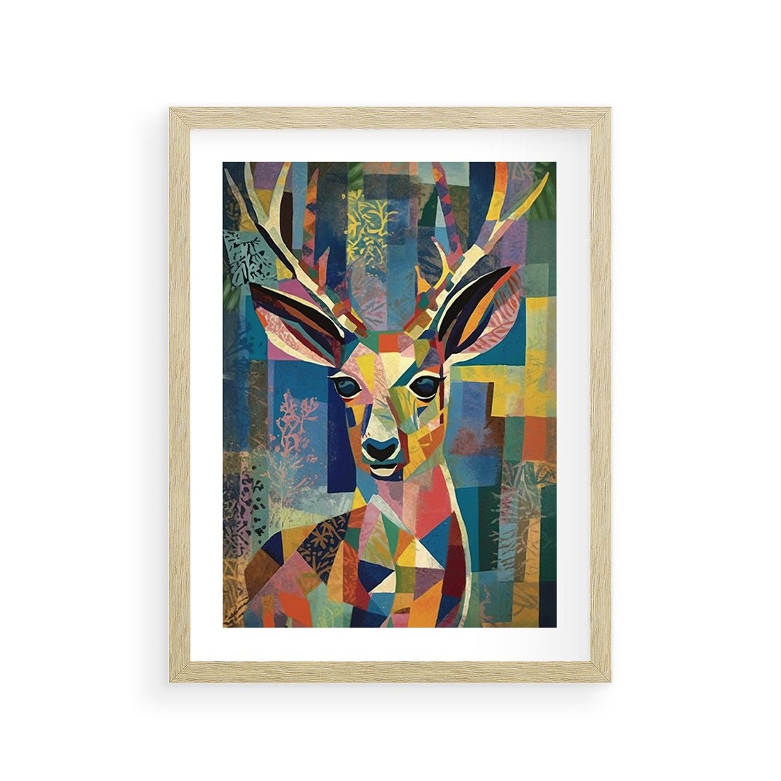 Plakat w ramie 30x40 - Bezgraniczne Kontury Zaskoczenia - abstrakcyjny obraz olejny, jeleń - rama drewno