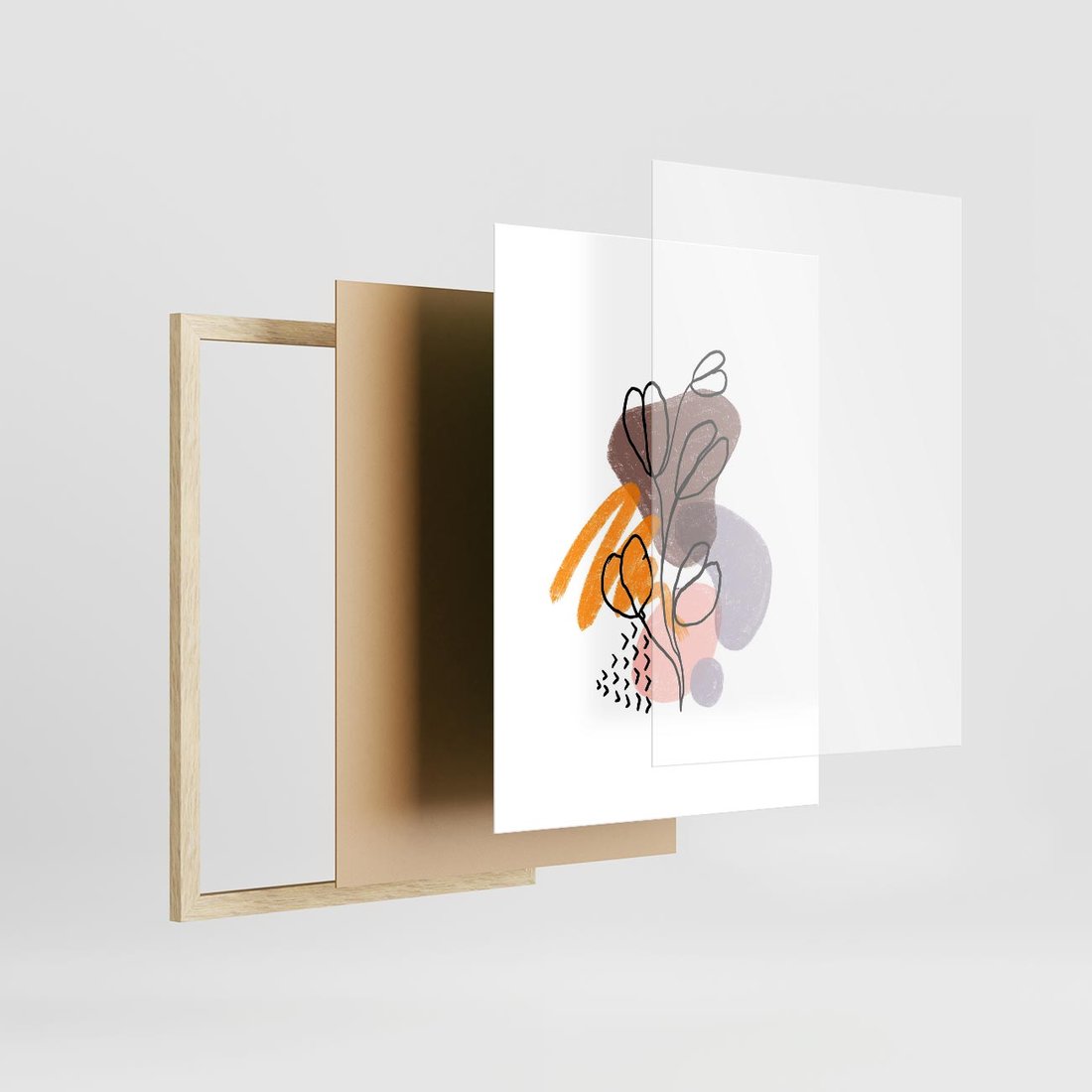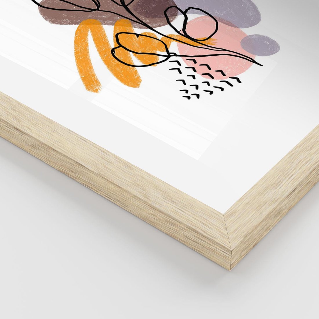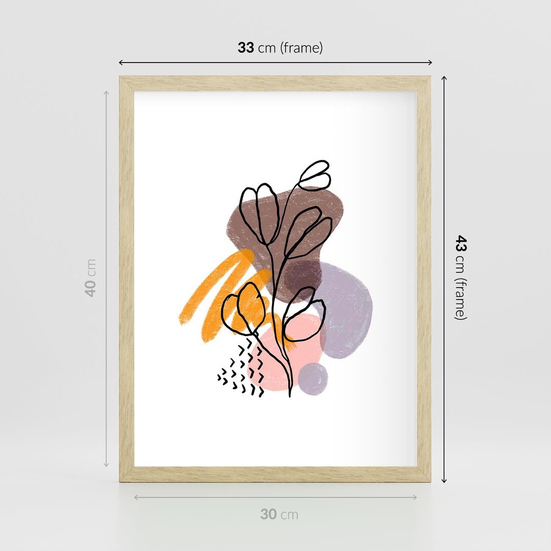 Plakat w ramie 30x40 - Bezgraniczne Widzenia - abstrakcyjna sztuka, liść gałązka - rama drewno