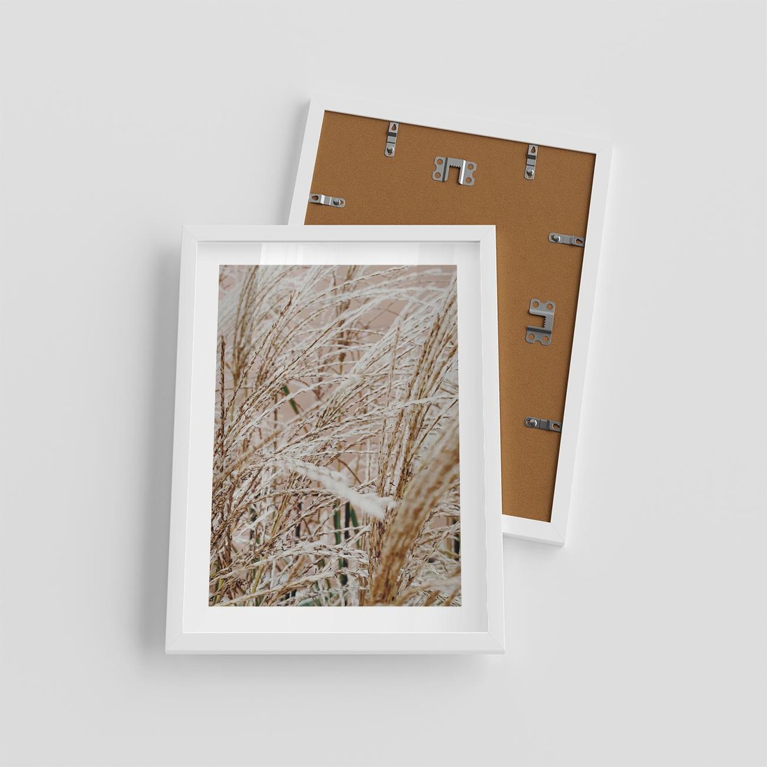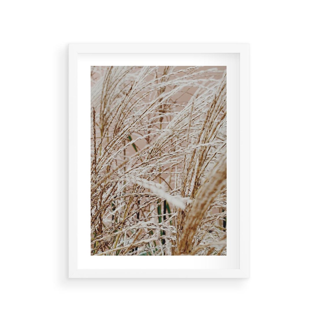 Plakat w ramie 30x40 - Beżowa Trawa - suche trawy, zbliżenie - rama biała