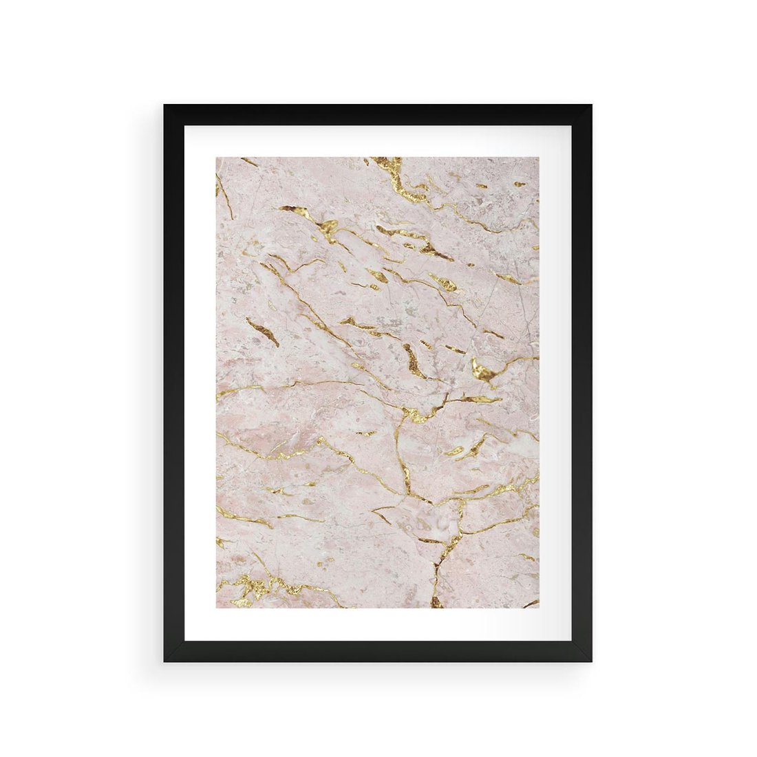 Plakat w ramie 30x40 - Beżowy Marmur i Złoto - marmur, beżowy marmur - rama czarna