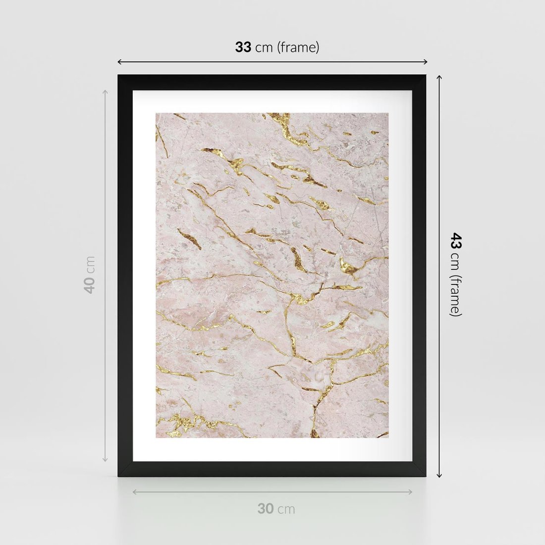 • Plakat w ramie 30x40 - Beżowy Marmur i Złoto