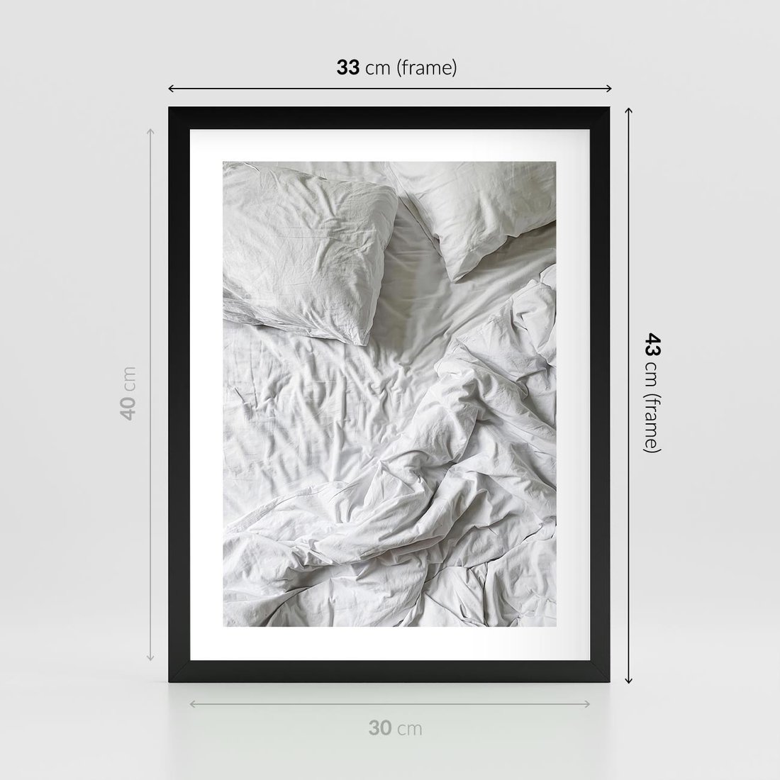 - Plakat w ramie 30x40 - Biała Pościel na Łóżku