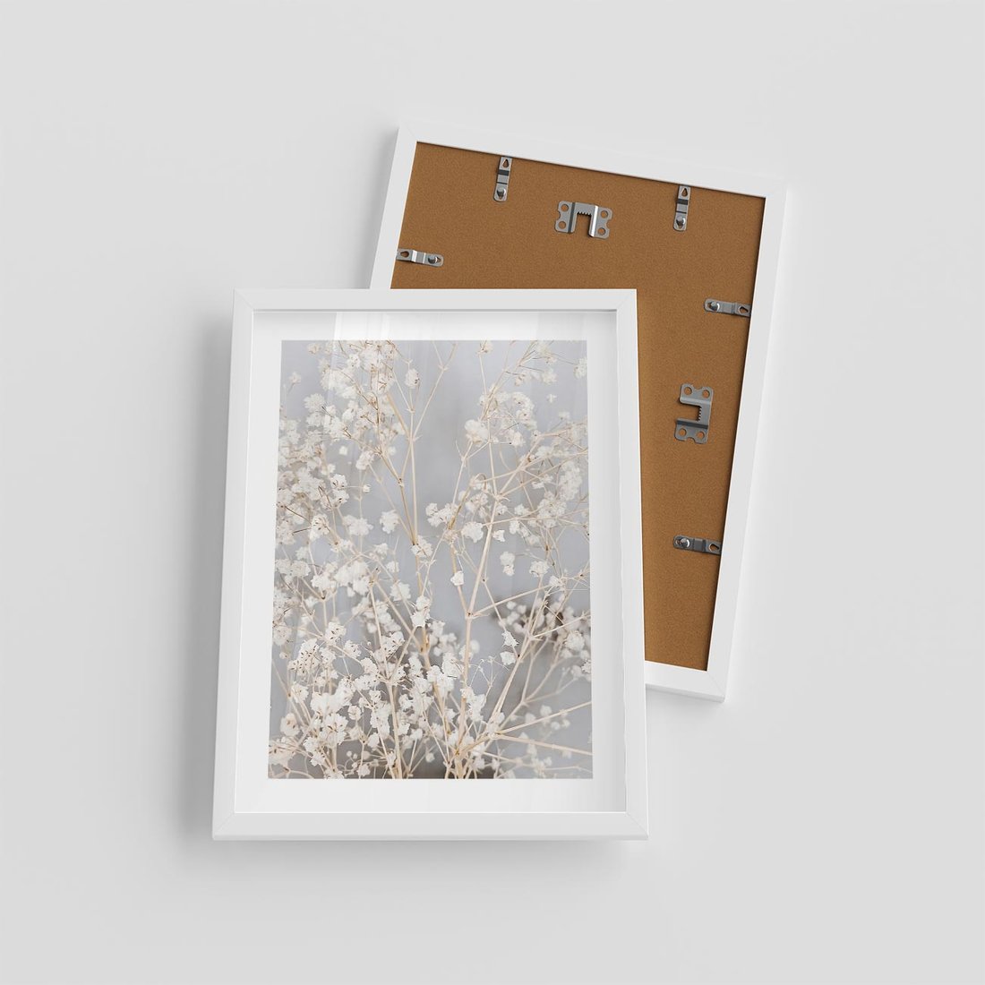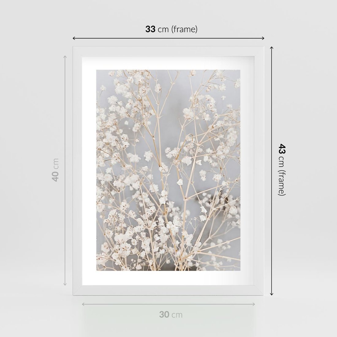 Plakat w ramie 30x40 - Białe Drobne Kwiaty - gipsówka, białe drobne kwiatki - rama biała