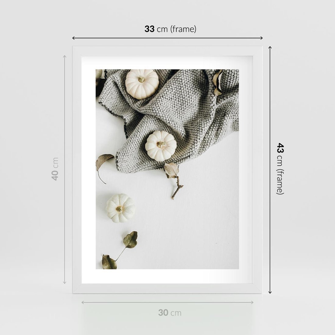 - Plakat w ramie 30x40 - Białe Dynie i Przytulny Koc
