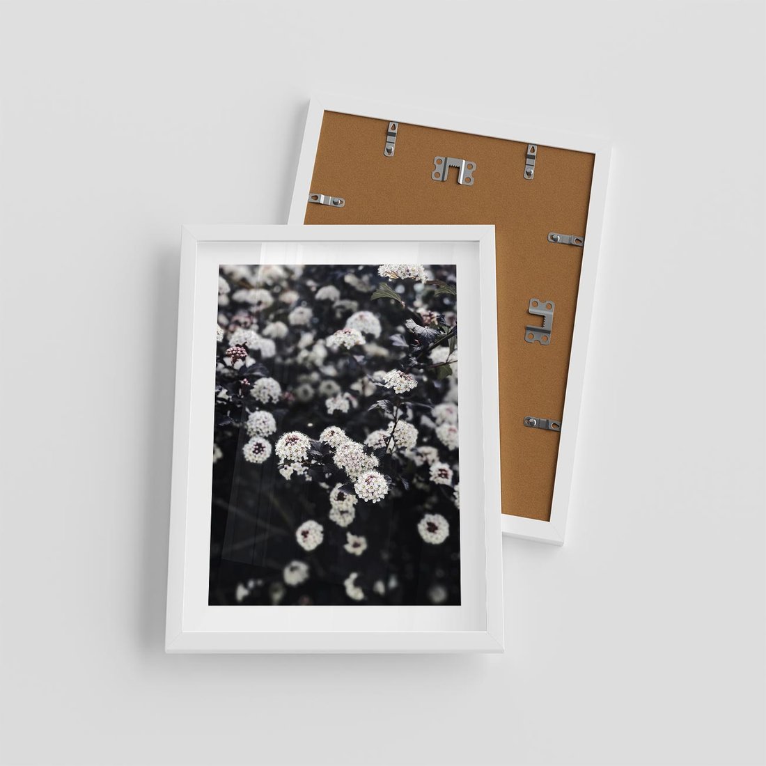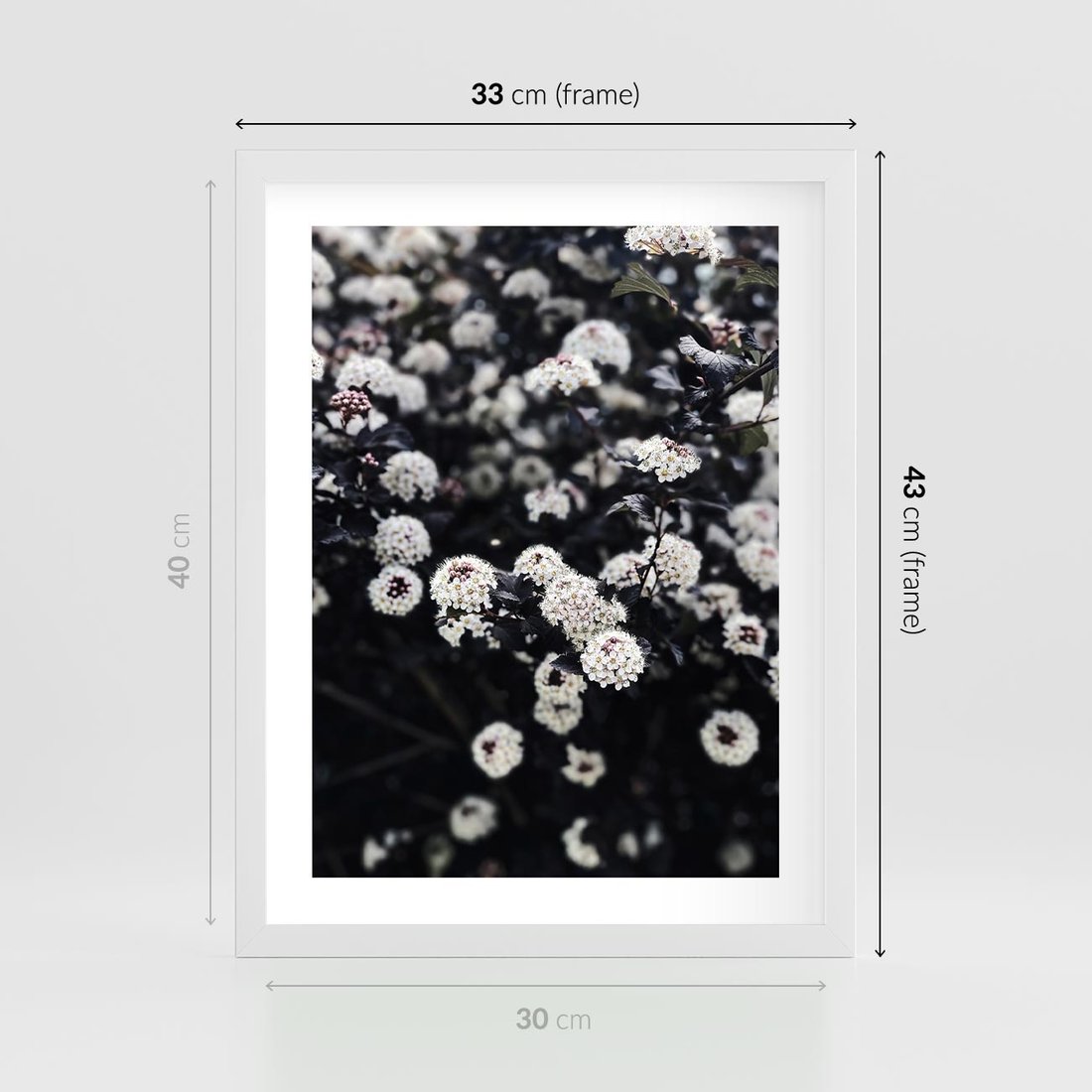 - Plakat w ramie 30x40 - Białe Kwiaty na Kwitnącym Krzewie